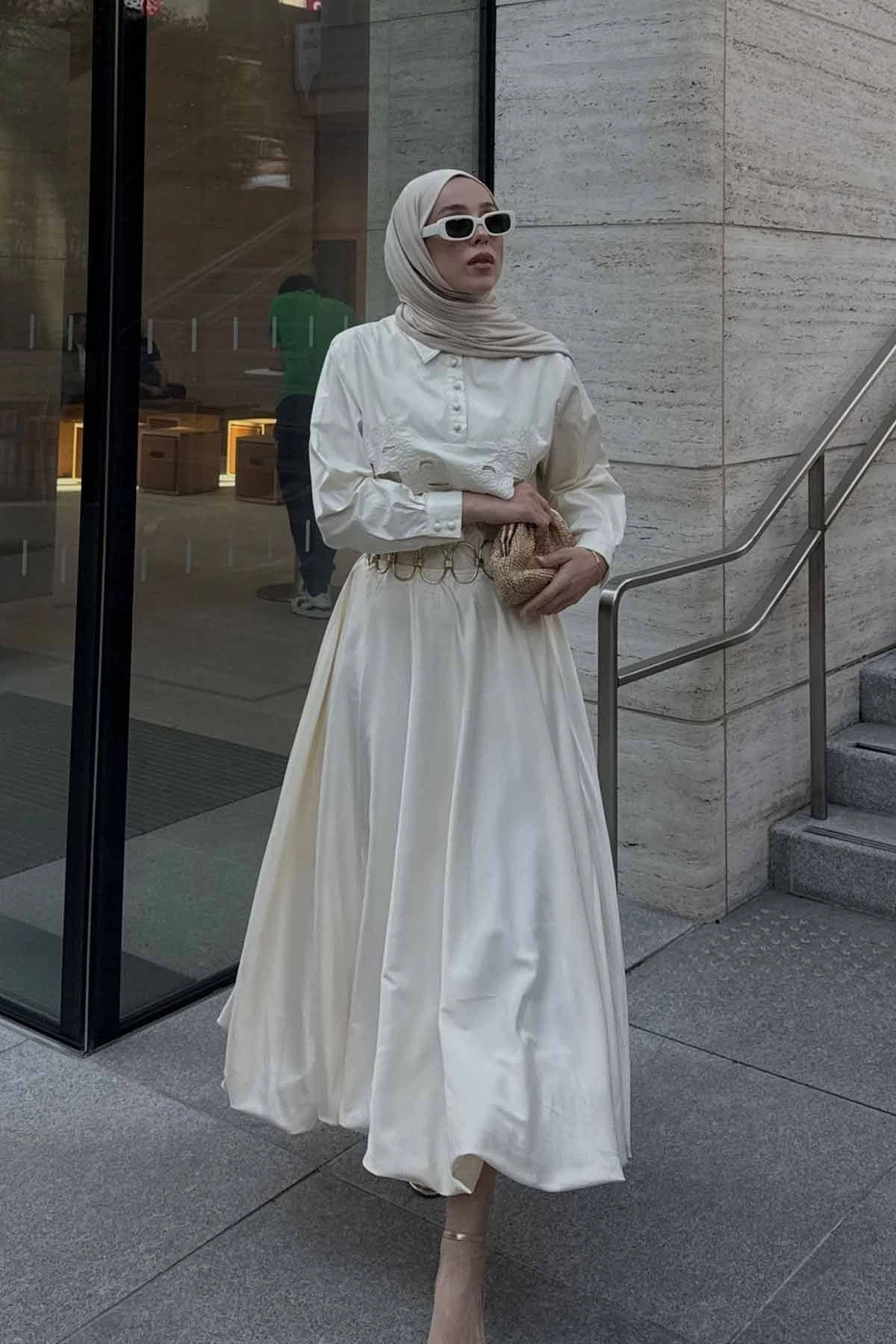 Rose Nakış Detaylı Poplin Krem Gömlek