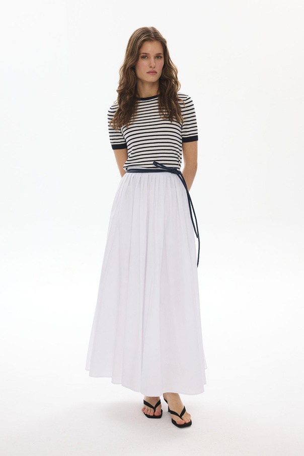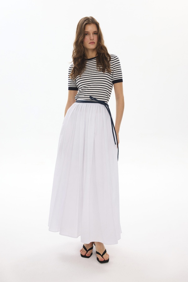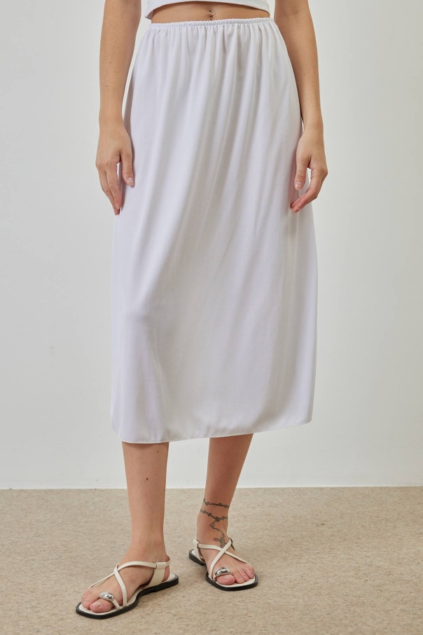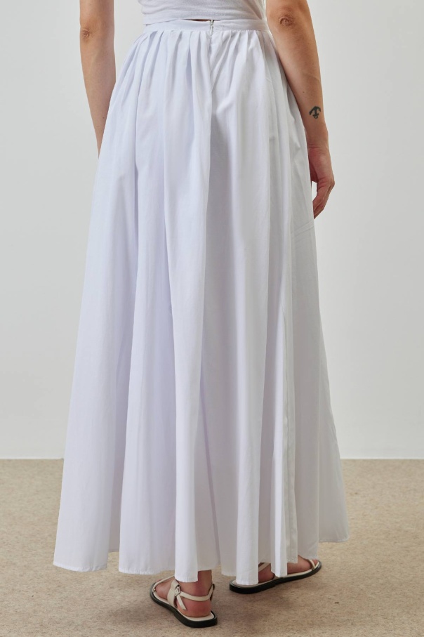 A Kesim Pileli Beyaz Poplin Etek
