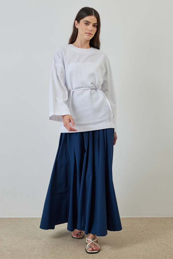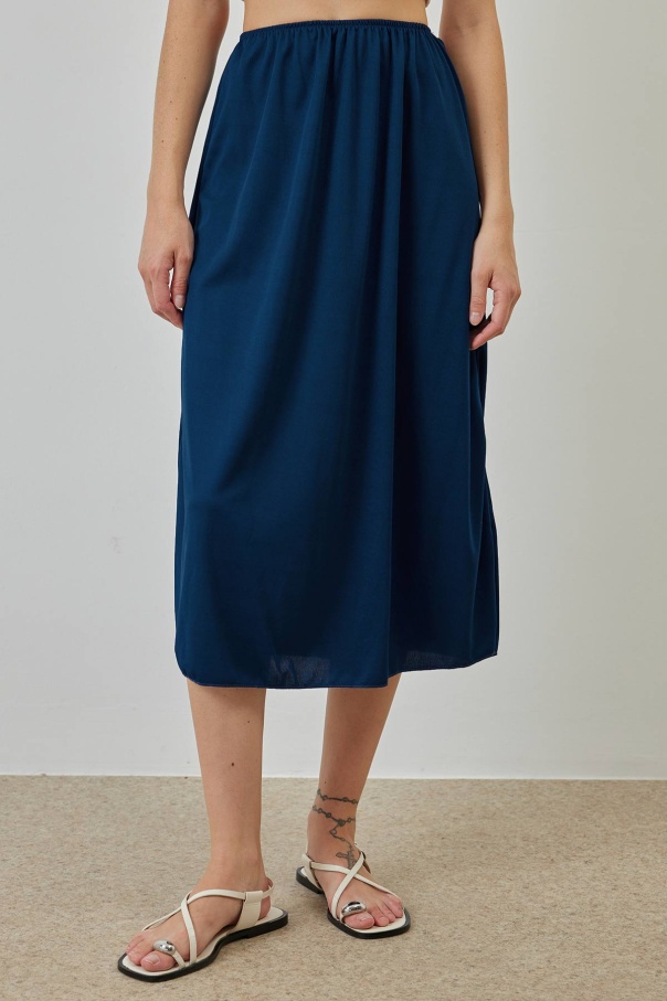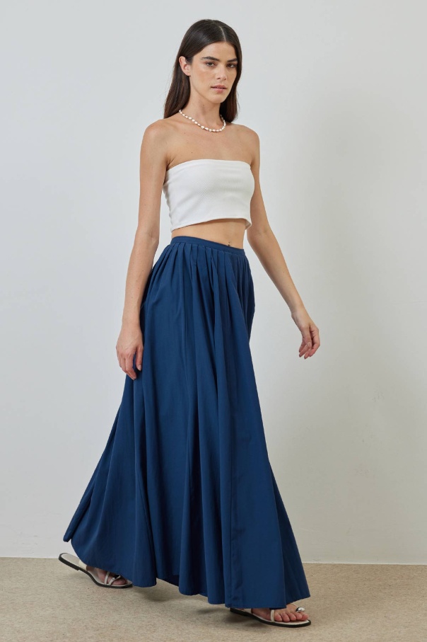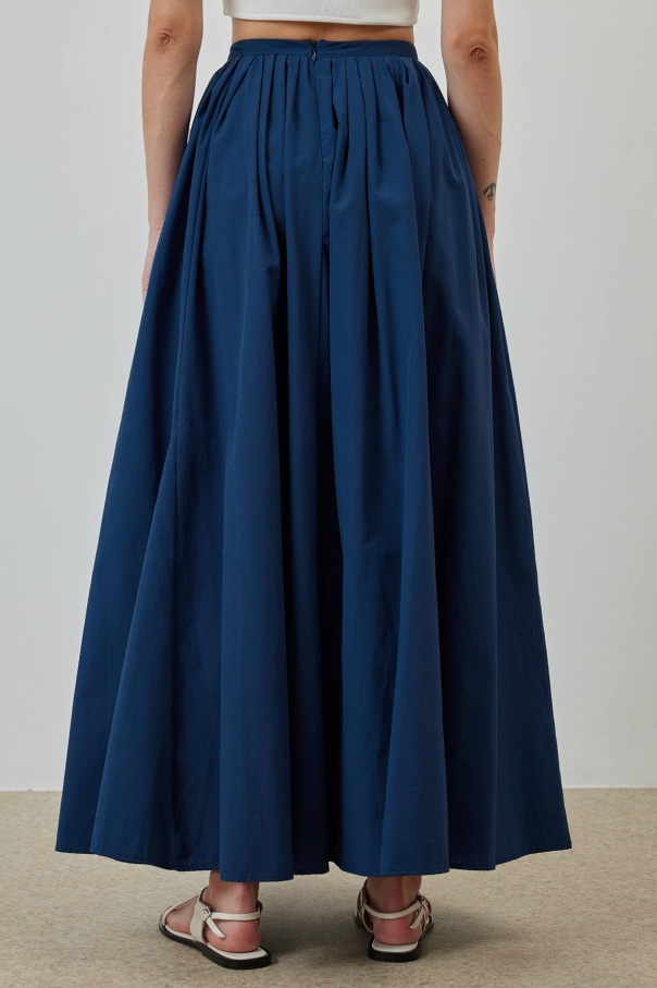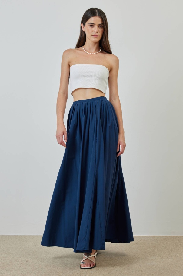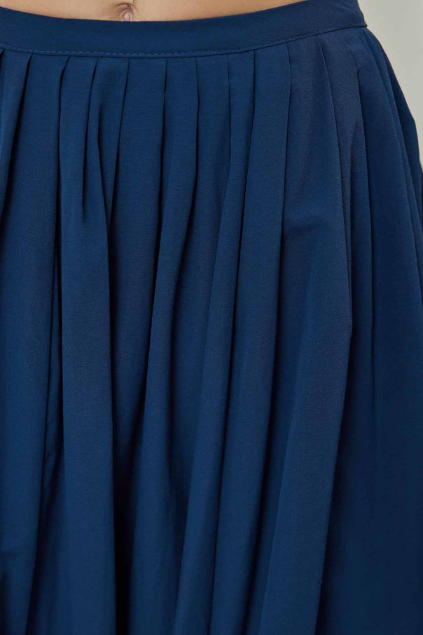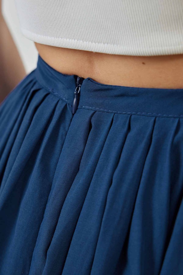 A Kesim Pileli Lacivert Poplin Etek