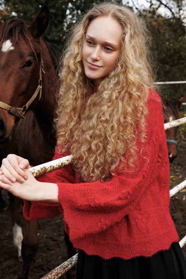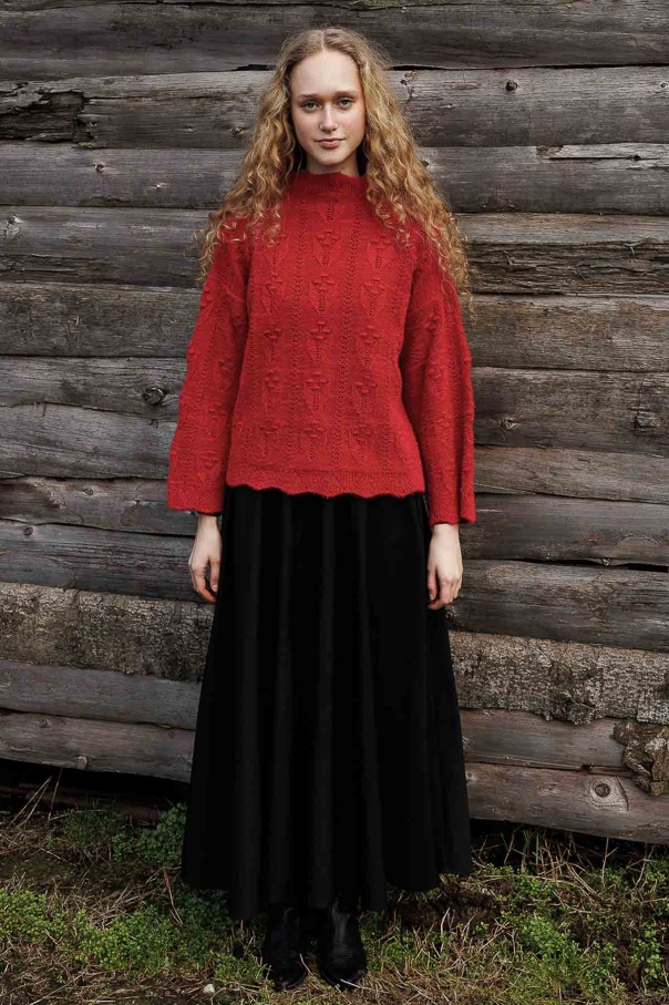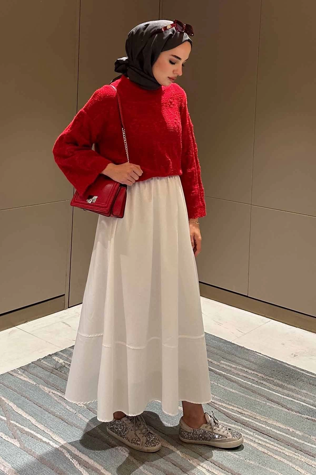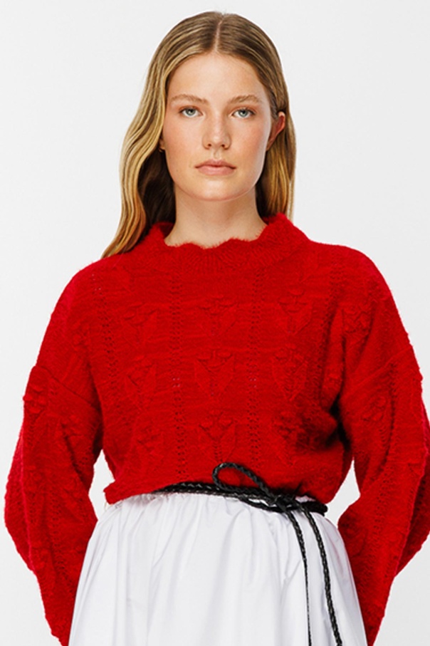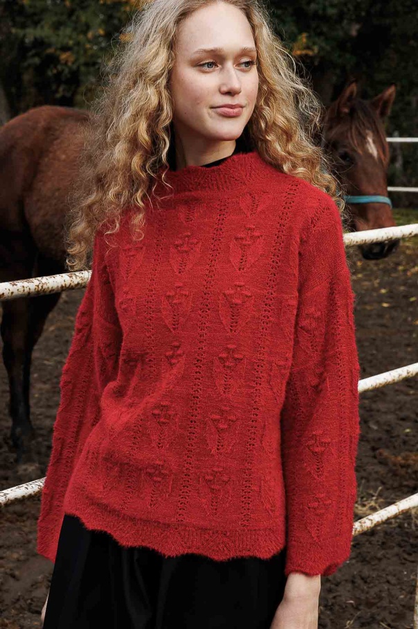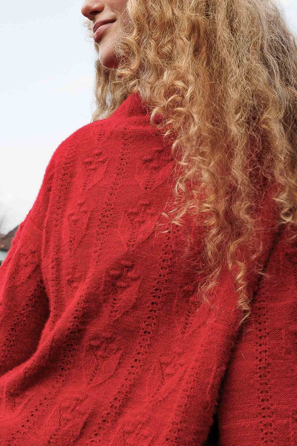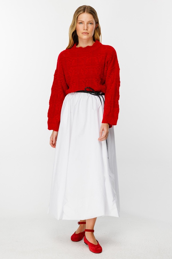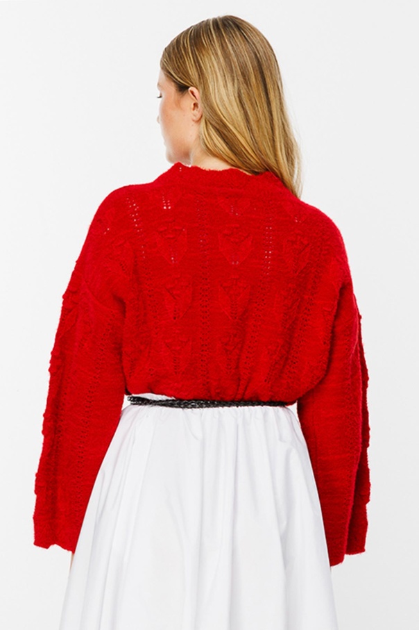 Ajur Örgü Ponponlu Kırmızı Kazak
