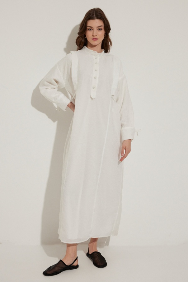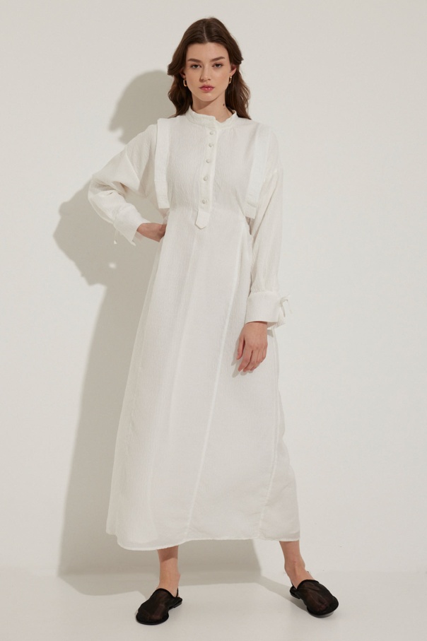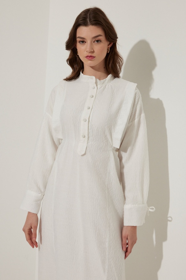 Aller Kol Detaylı Dokulu Beyaz Elbise
