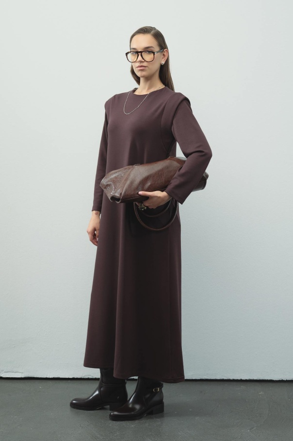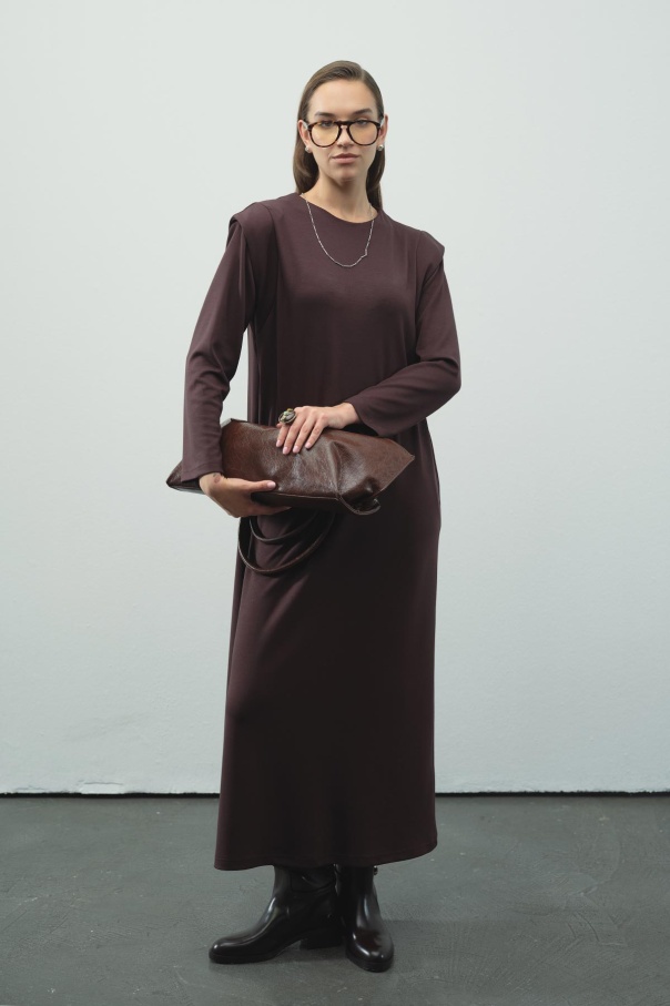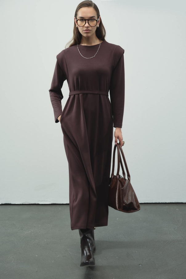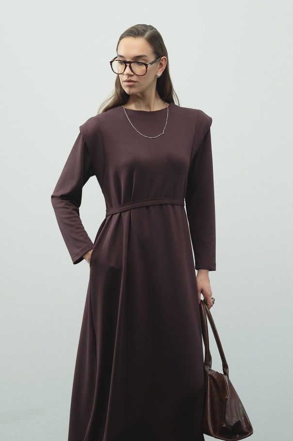 Aller Detaylı Compact Pamuklu Kahve Elbise