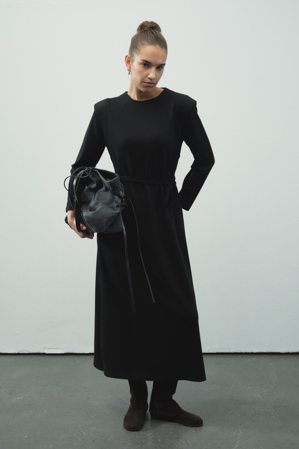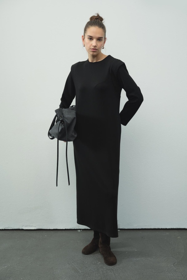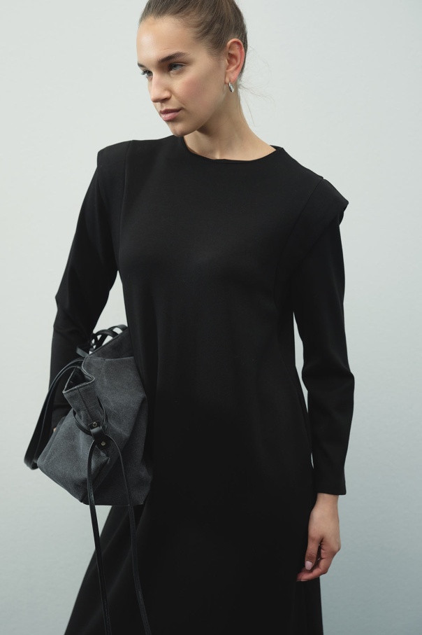 Aller Detaylı Compact Pamuklu Siyah Elbise