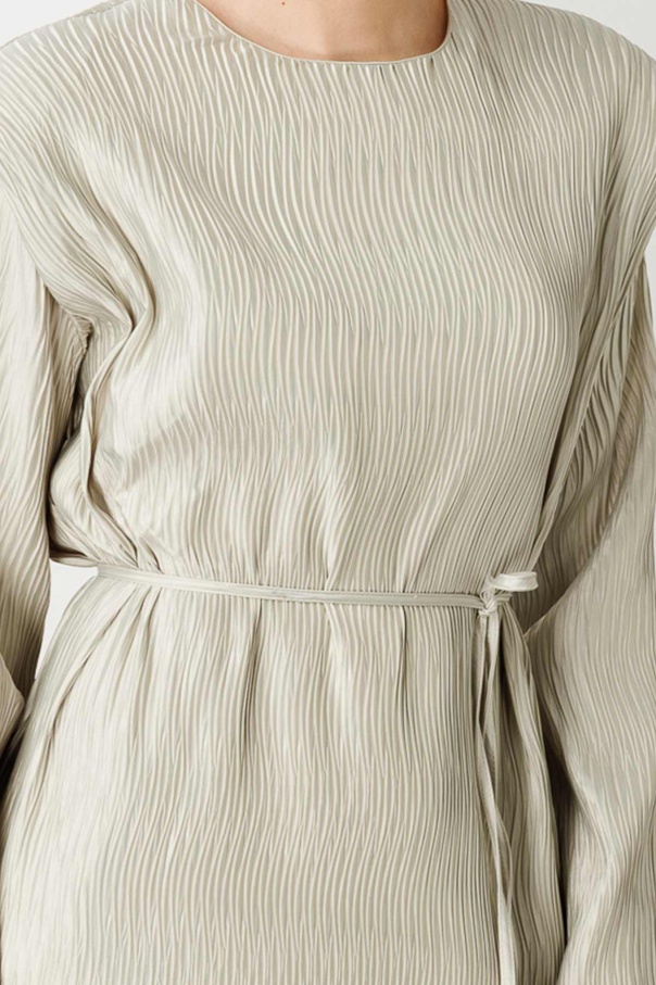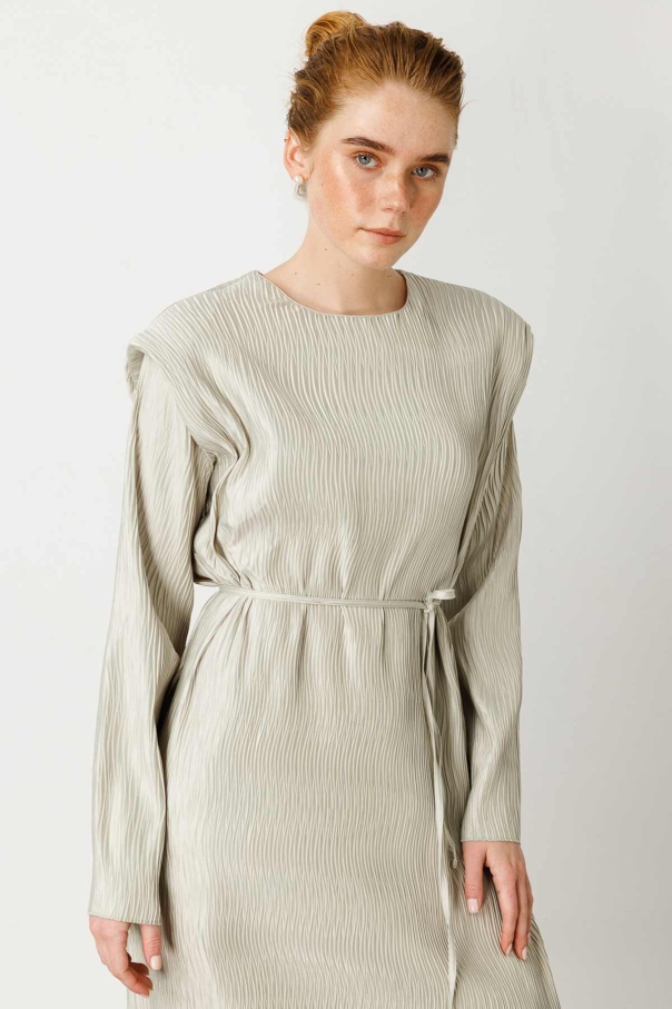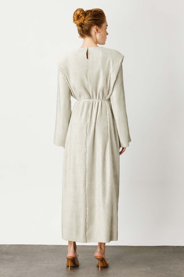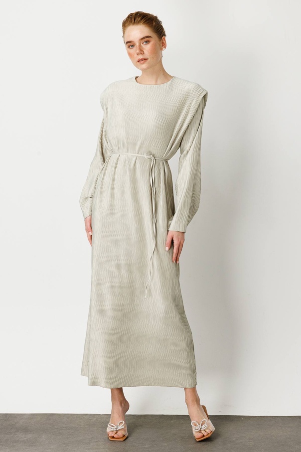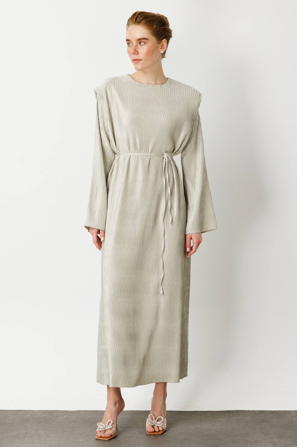 Aller Detaylı Dokulu Saten Su Yeşili Elbise