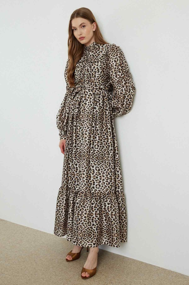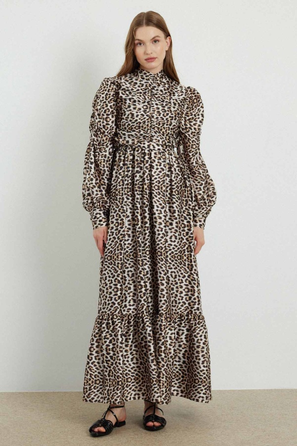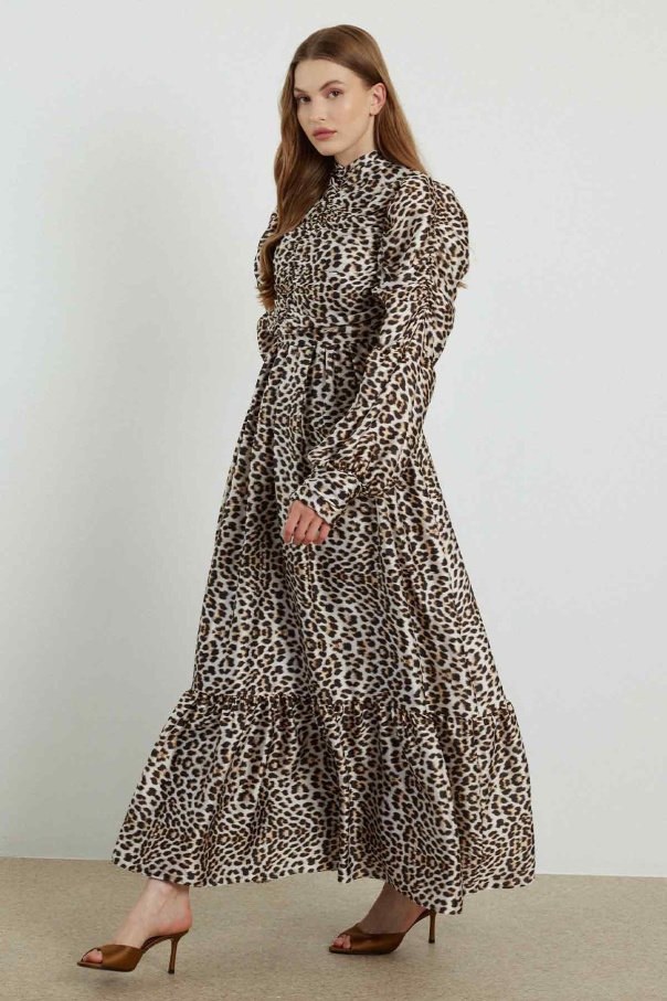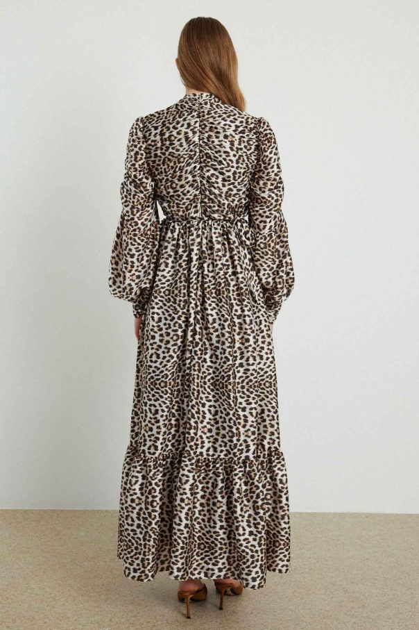 Ameliya Baskılı Saten Leopar Elbise