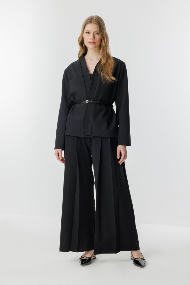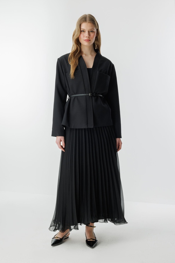 Andera Deri Kemer Detaylı Siyah Ceket