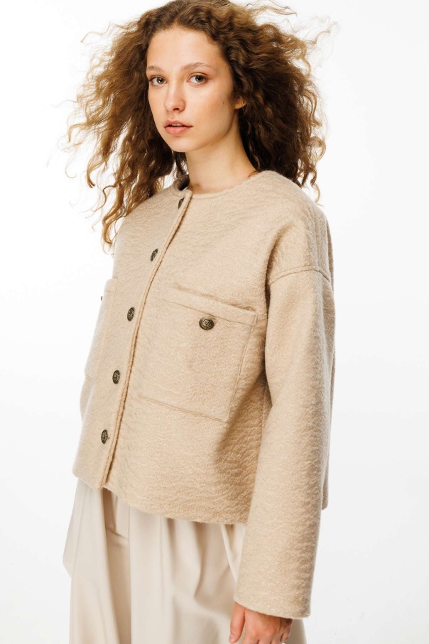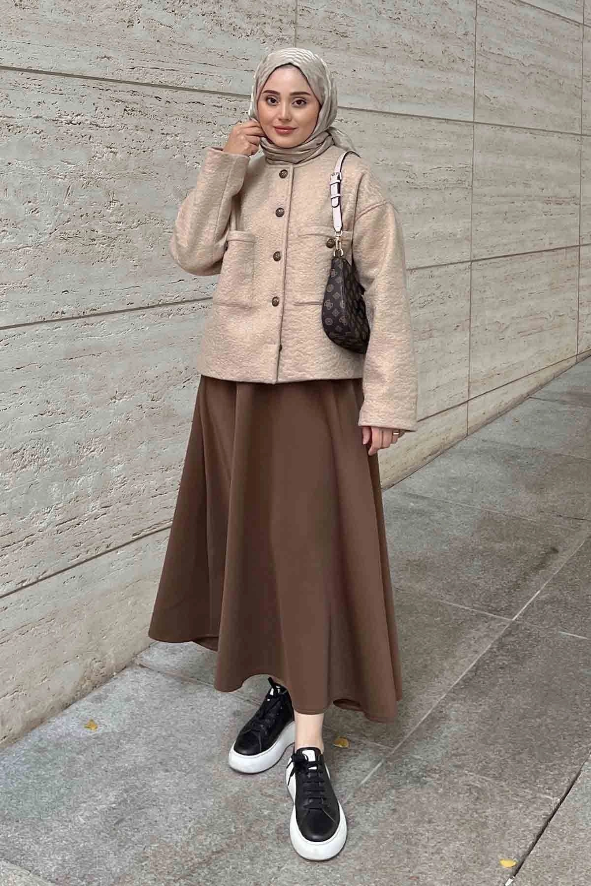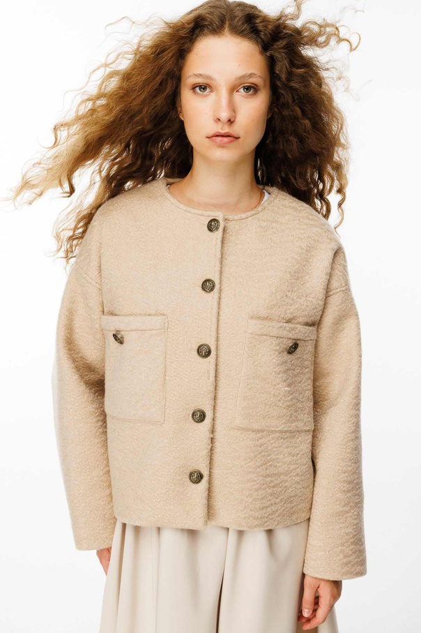 Antik Metal Düğmeli Sütlü Kahve Ceket