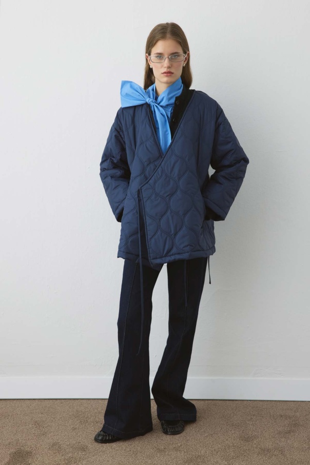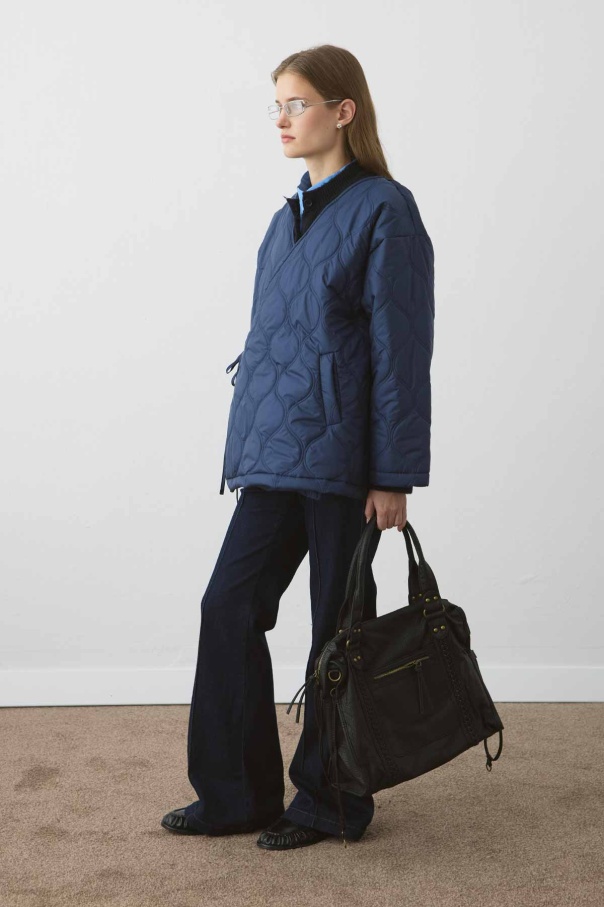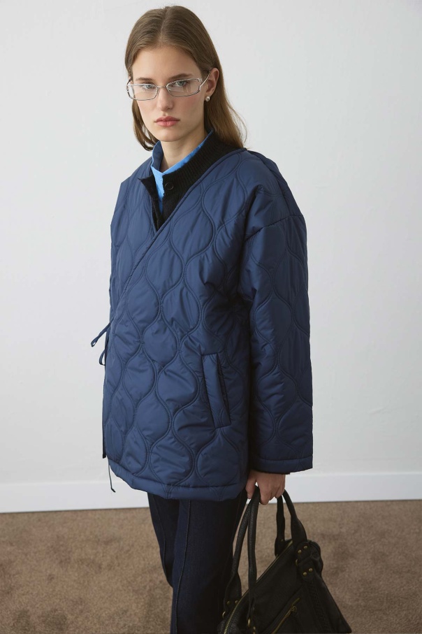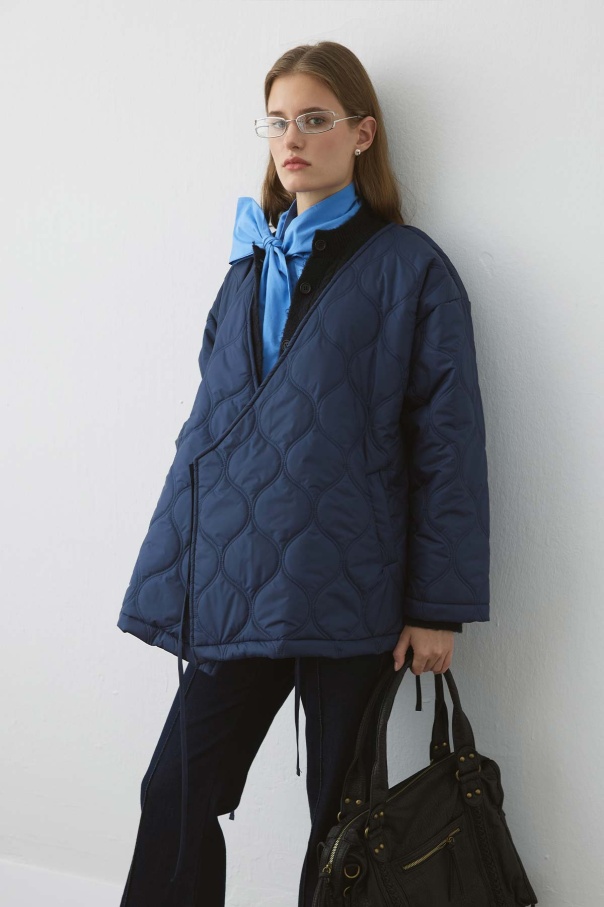Anvelop Bağlamalı Kapitone Lacivert Mont