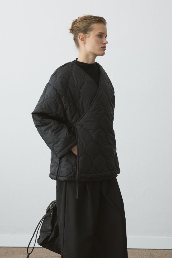 Anvelop Bağlamalı Kapitone Siyah Mont