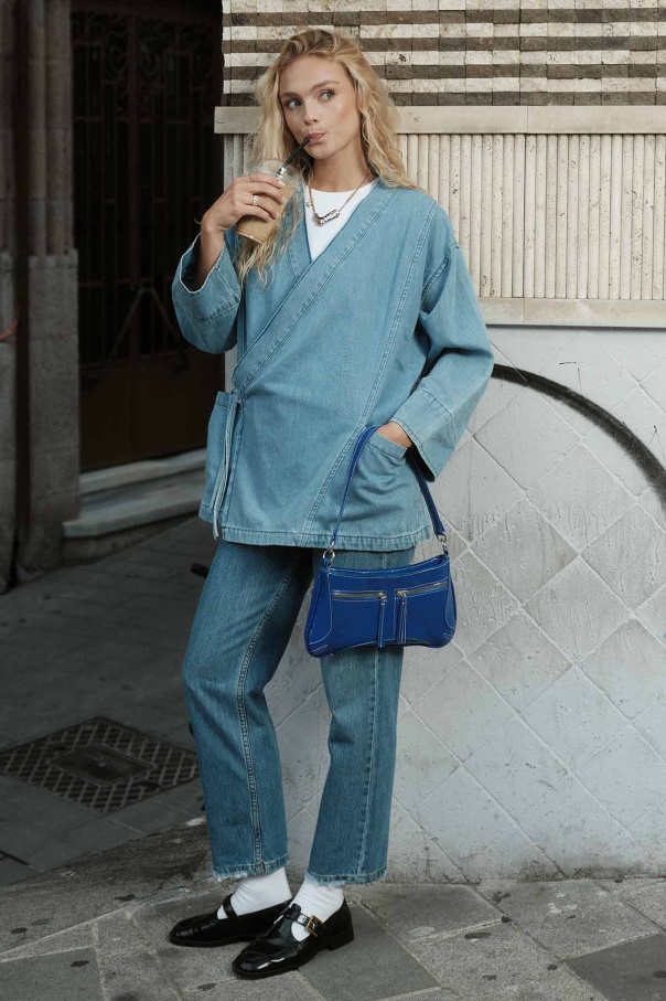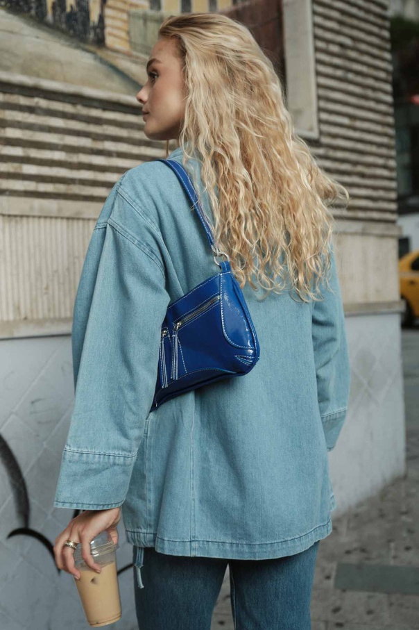 Anvelop Kapama Kot Kimono Mavi Ceket