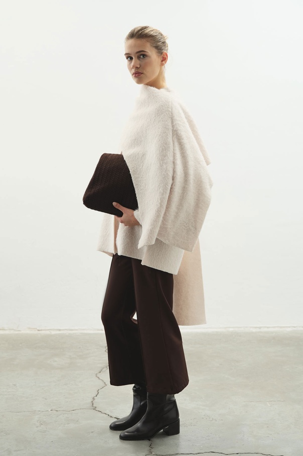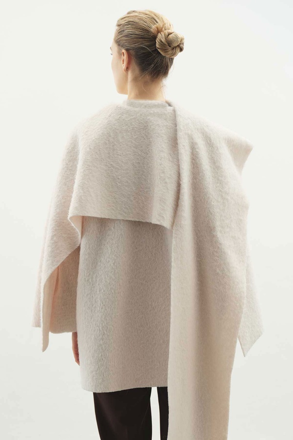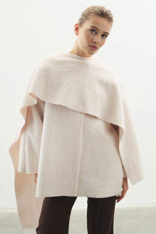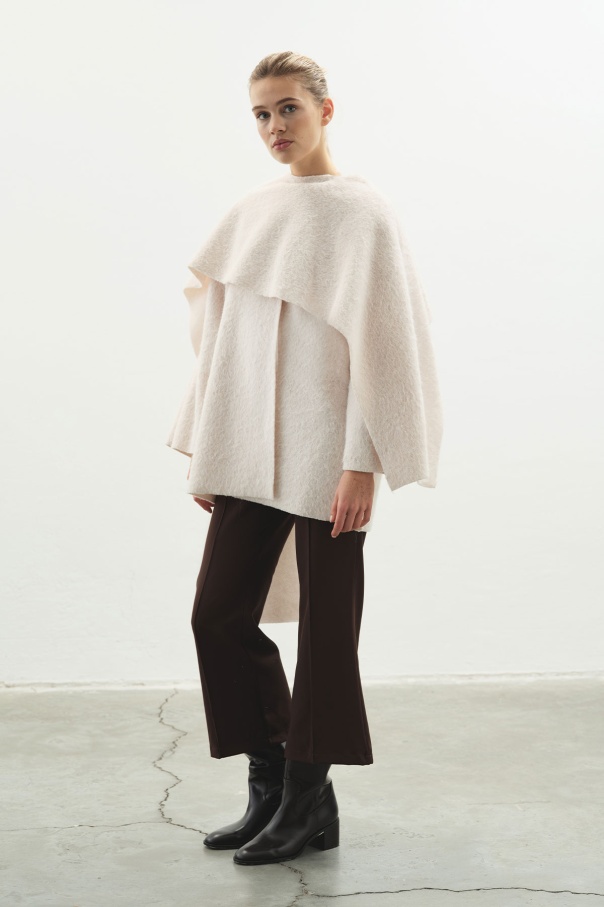 Asimetrik Kesim Pelerin Yaka Ekru Kaban