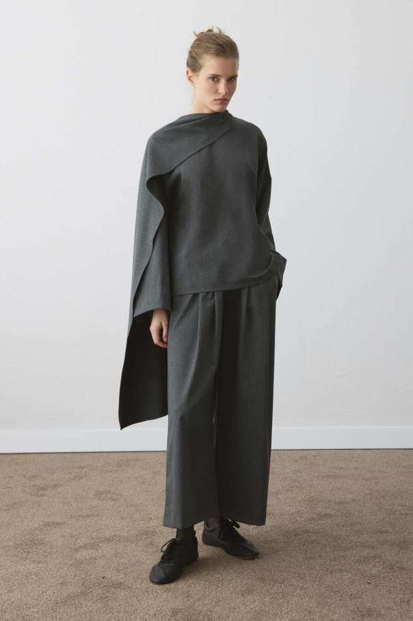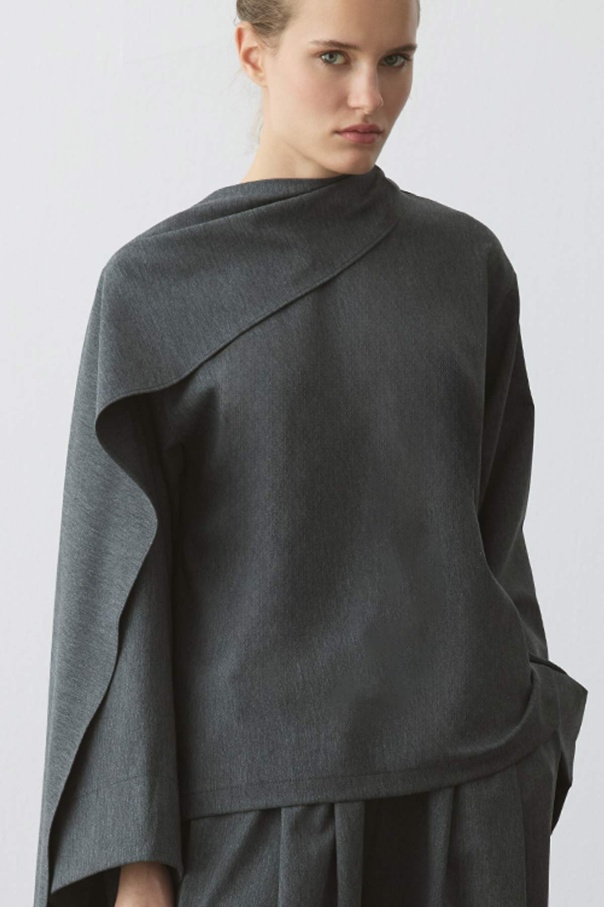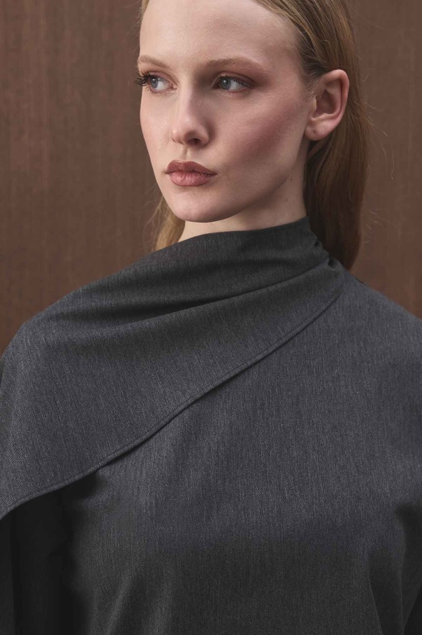 Asimetrik Pelerin Detaylı Antrasit Bluz