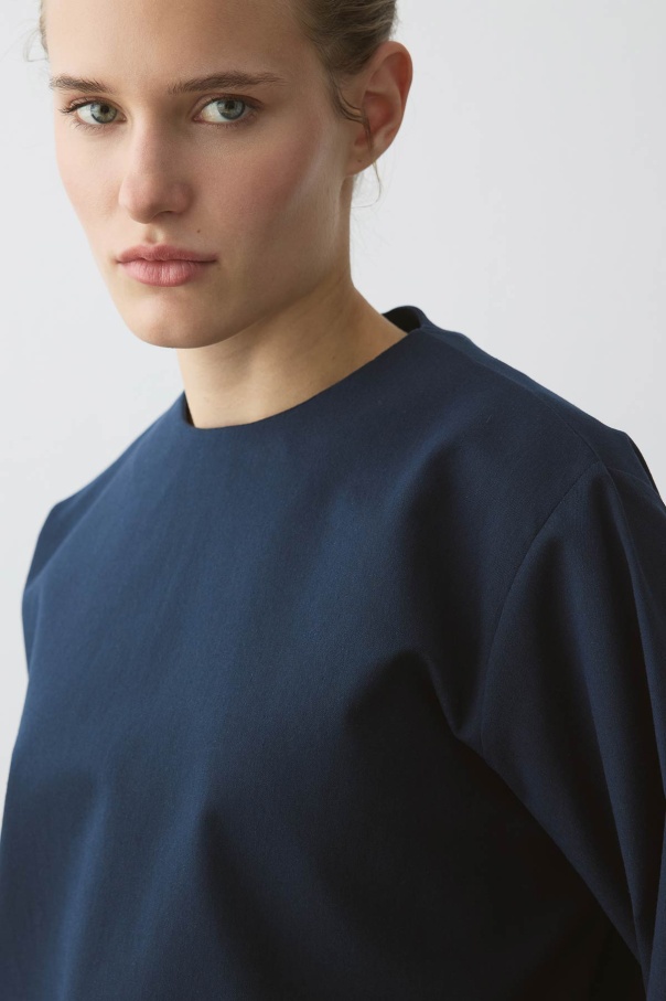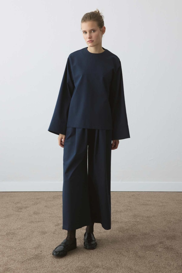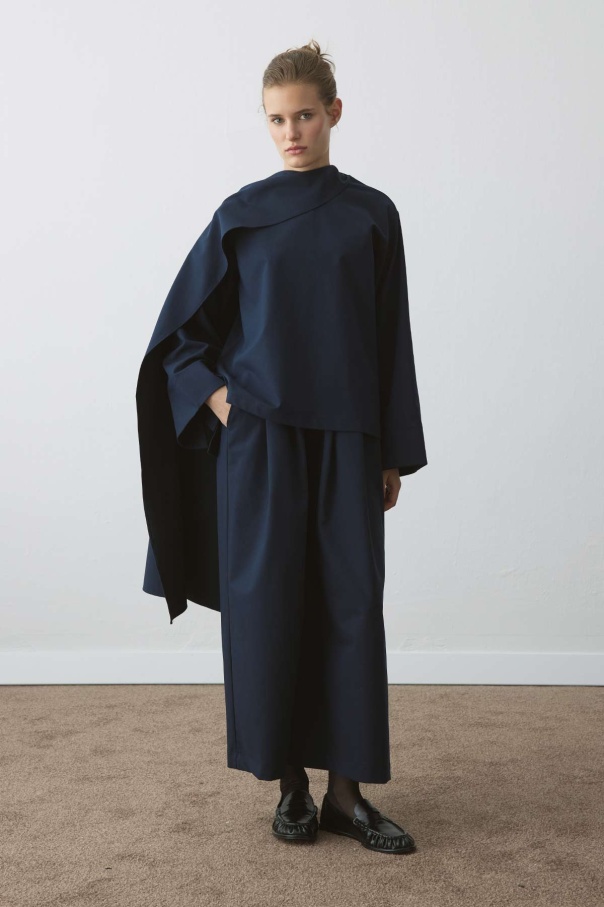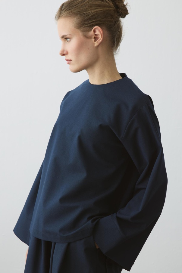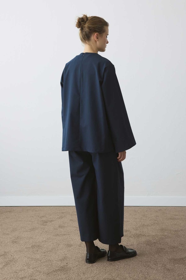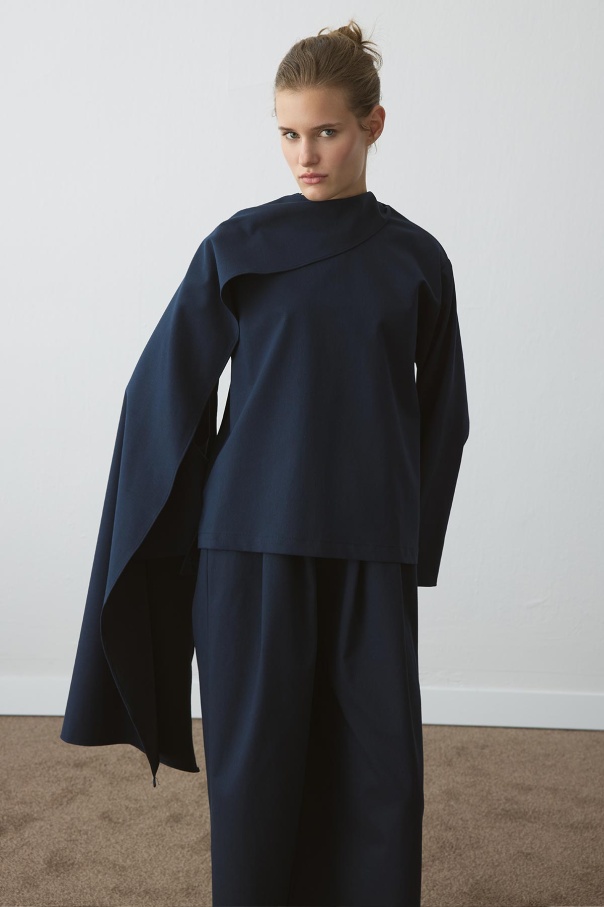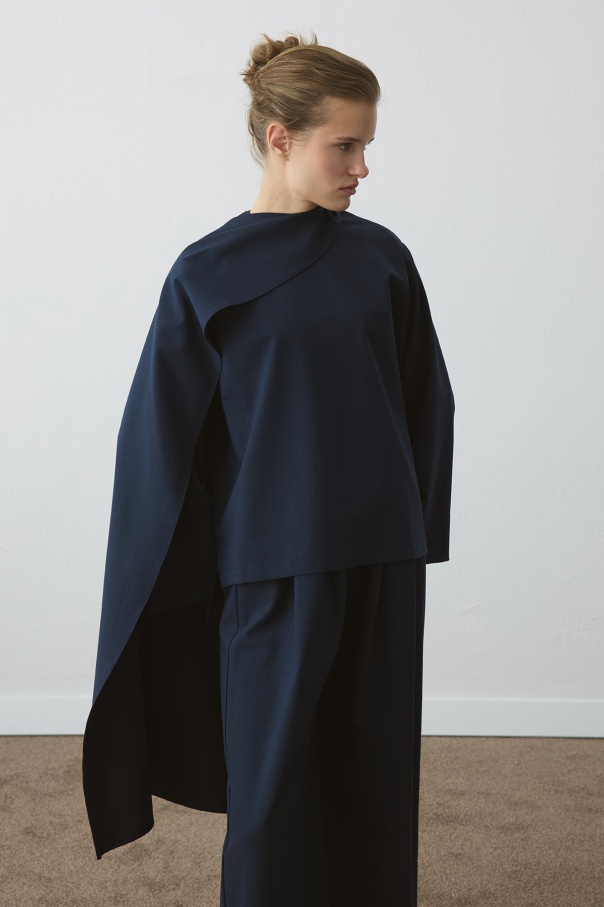 Asimetrik Pelerin Detaylı Lacivert Bluz