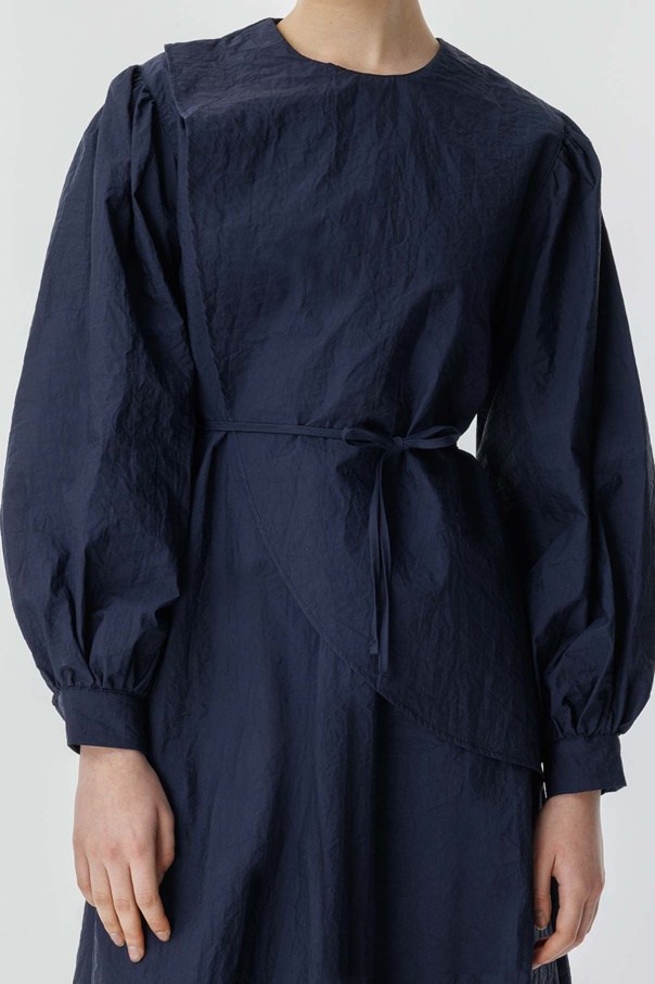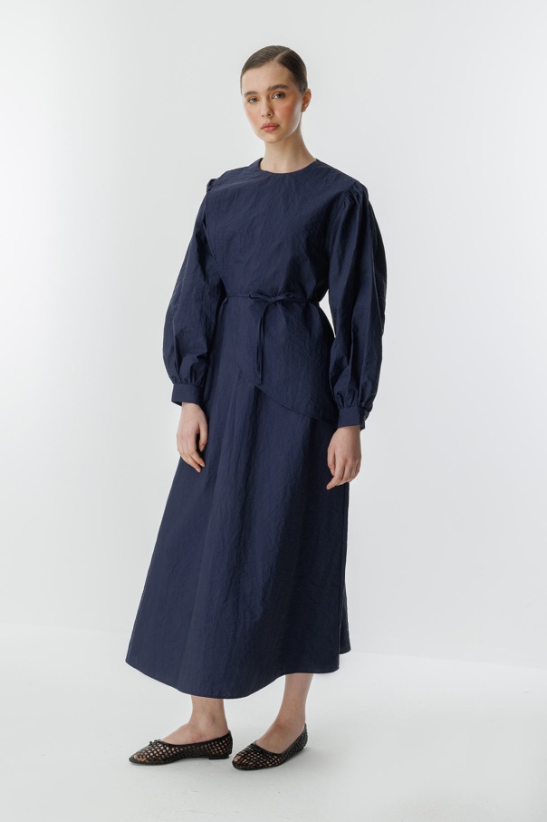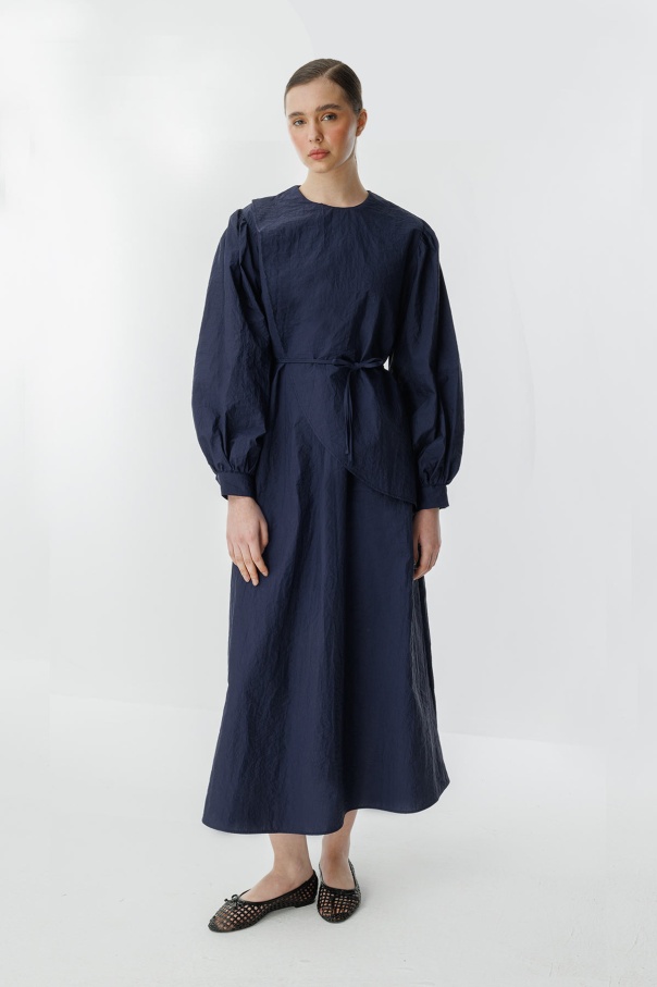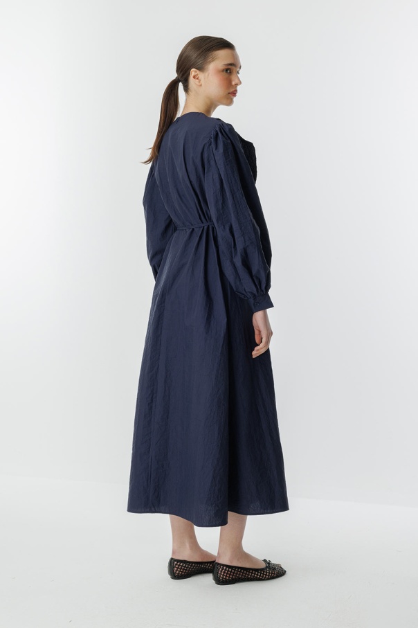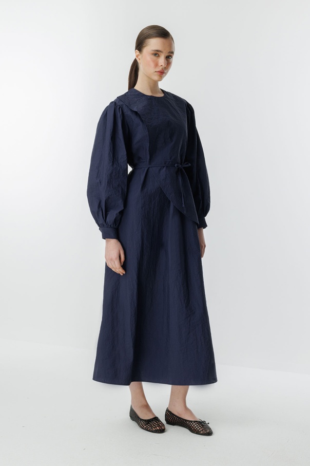 Asimetrik Pelerin Detaylı Lacivert Elbise