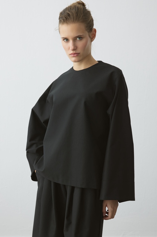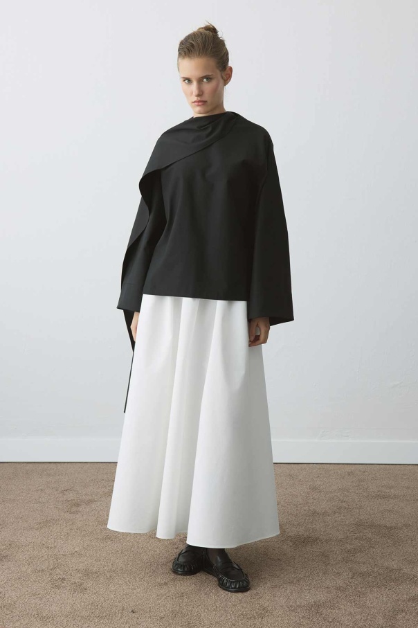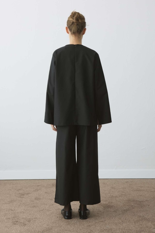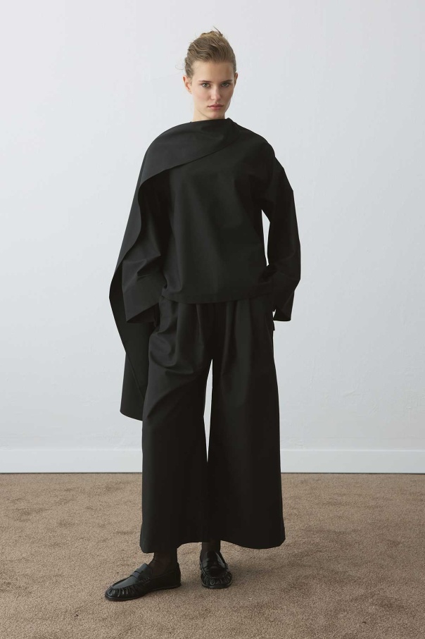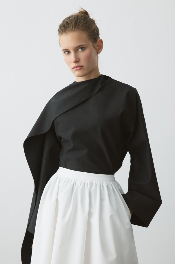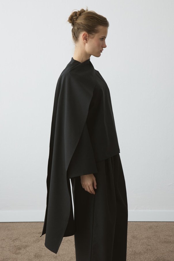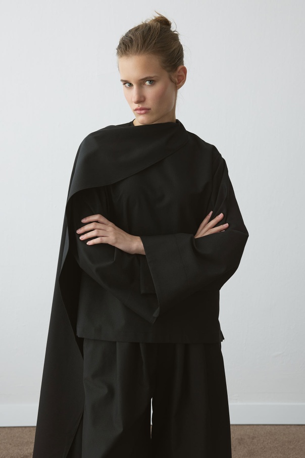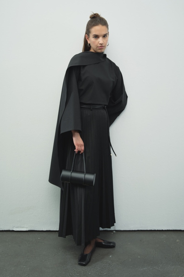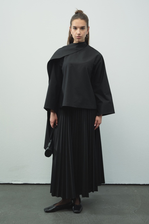 Asimetrik Pelerin Detaylı Siyah Bluz