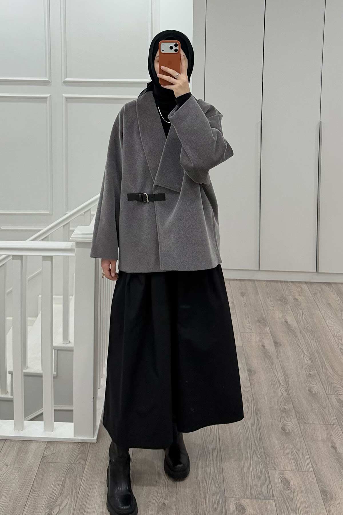 Kemer Tokalı Kaşe Füme Kaban