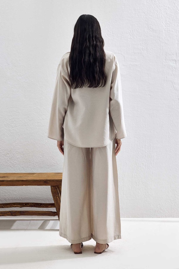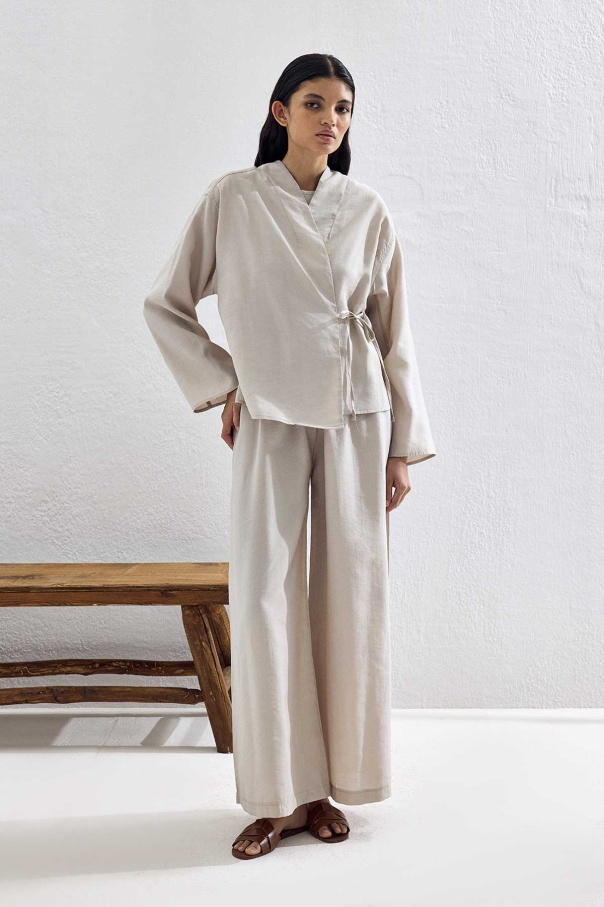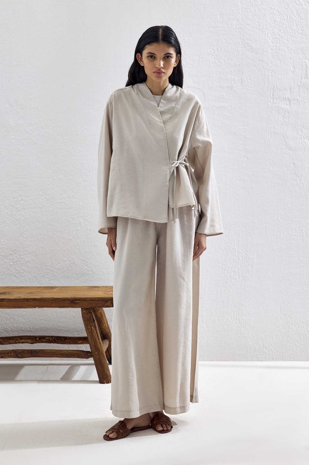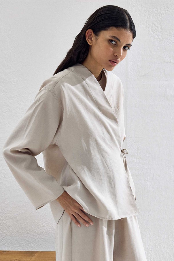 Bağcık Detaylı Lyocell Cupra Bej Kimono Takım