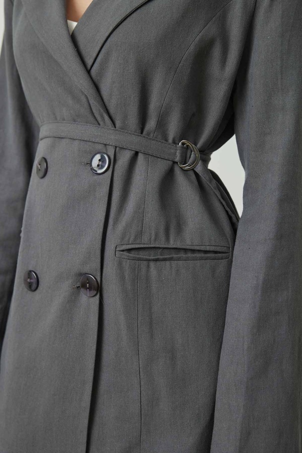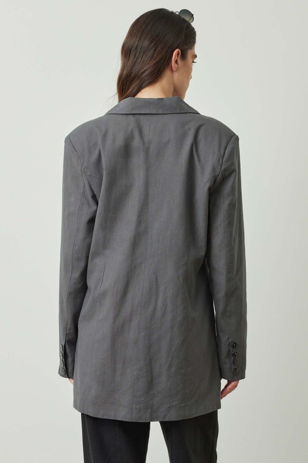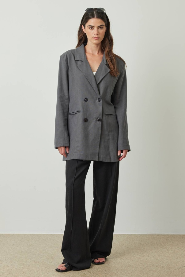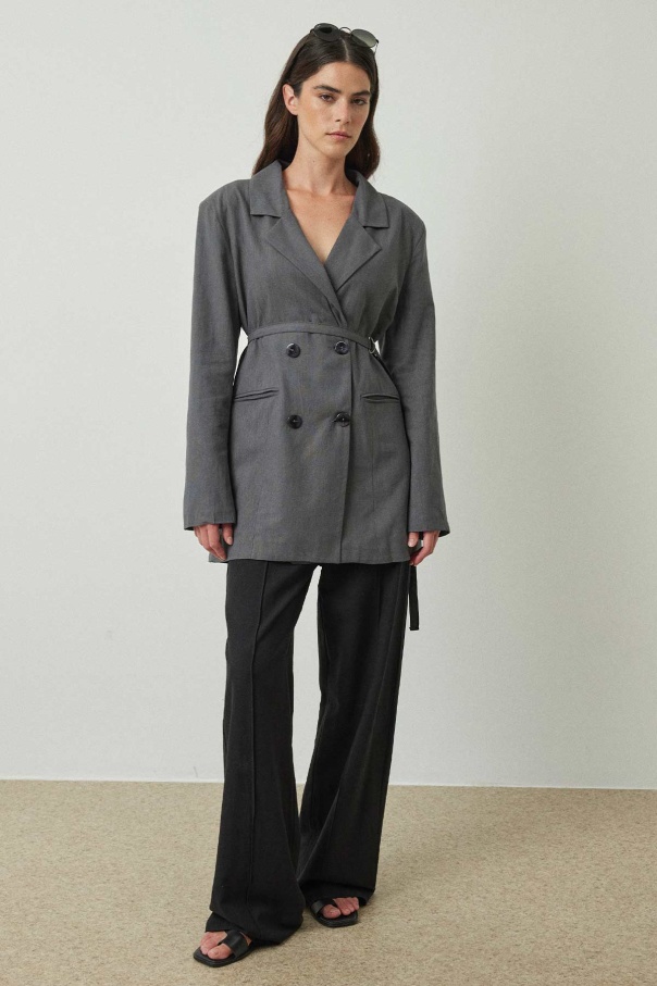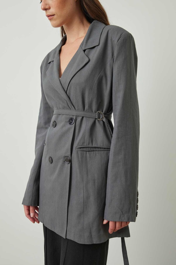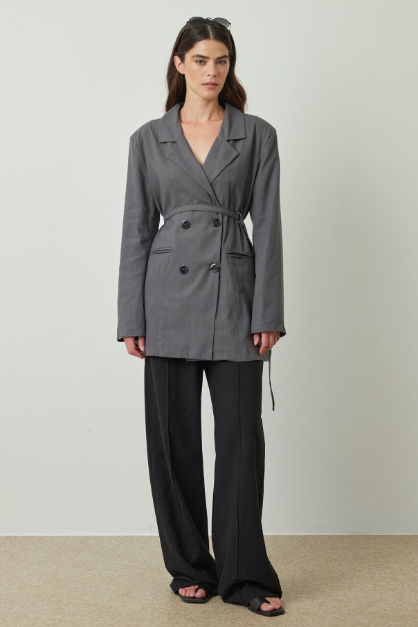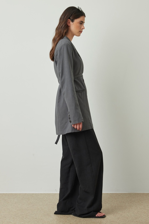 Bağlama Detaylı Antrasit Keten Blazer Ceket