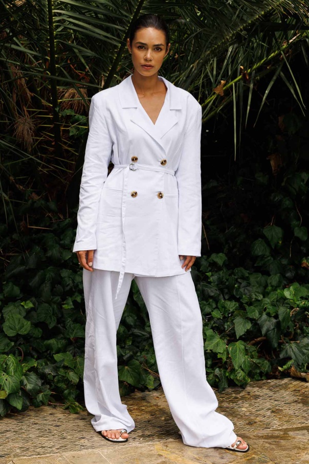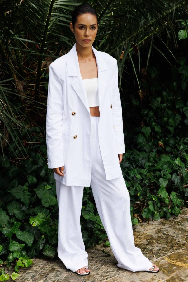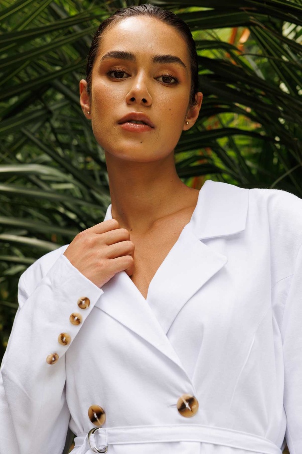Bağlama Detaylı Beyaz Keten Blazer Ceket