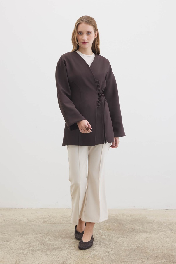 Bağlama Detaylı Kahve Ceket