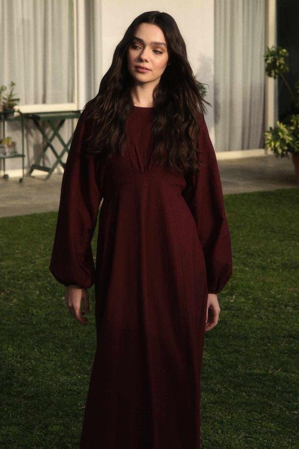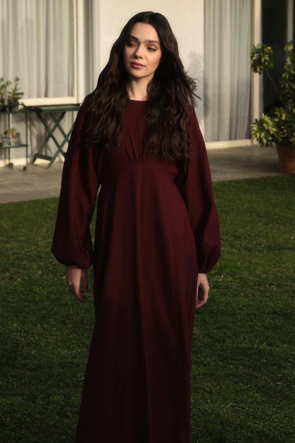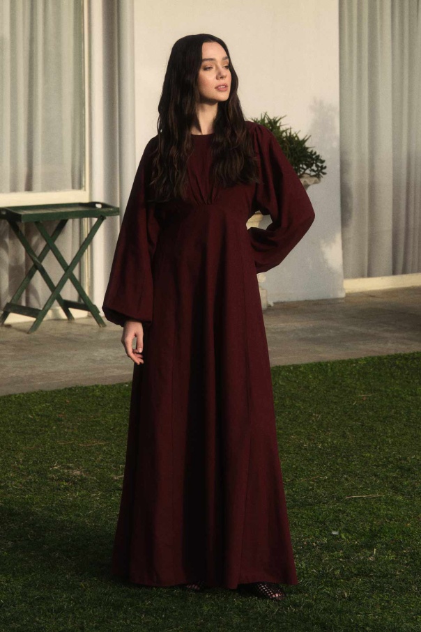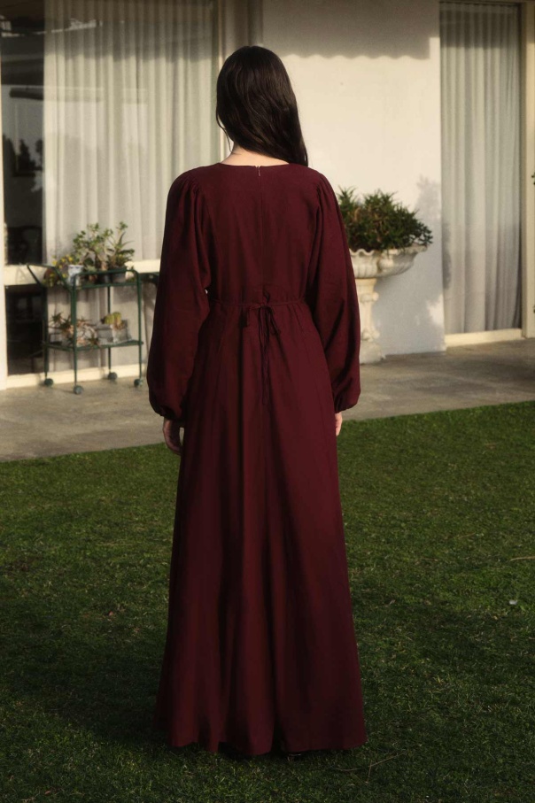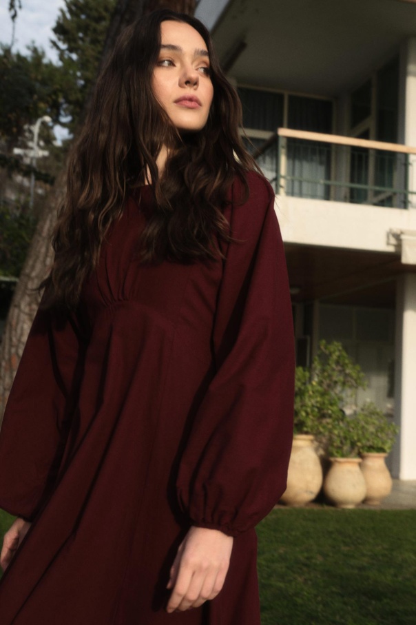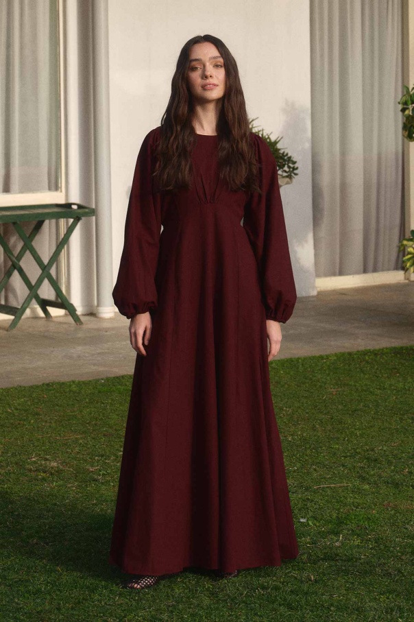 Balon Kol Bordo Naturel Elbise