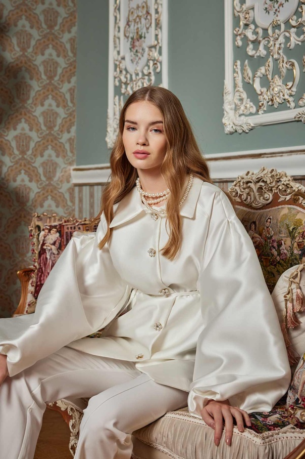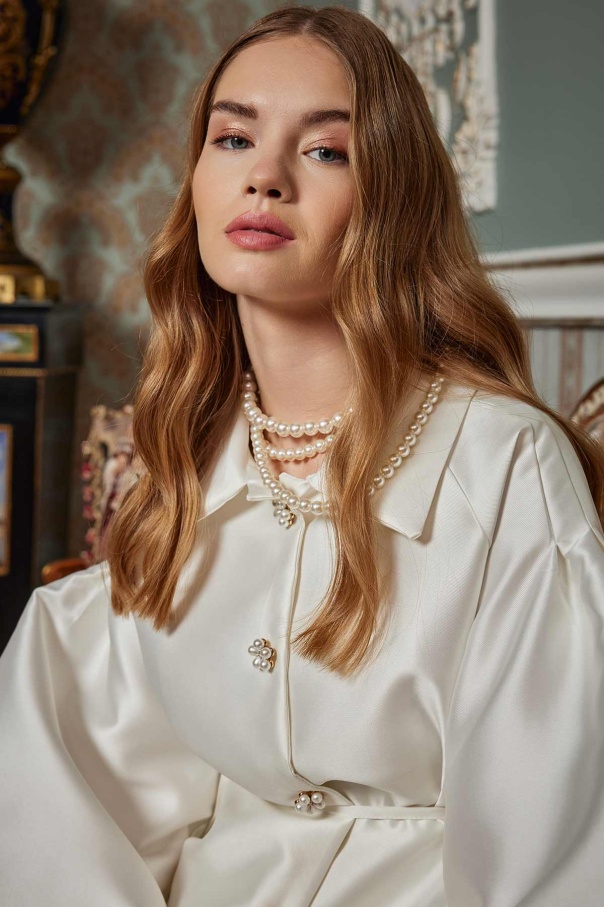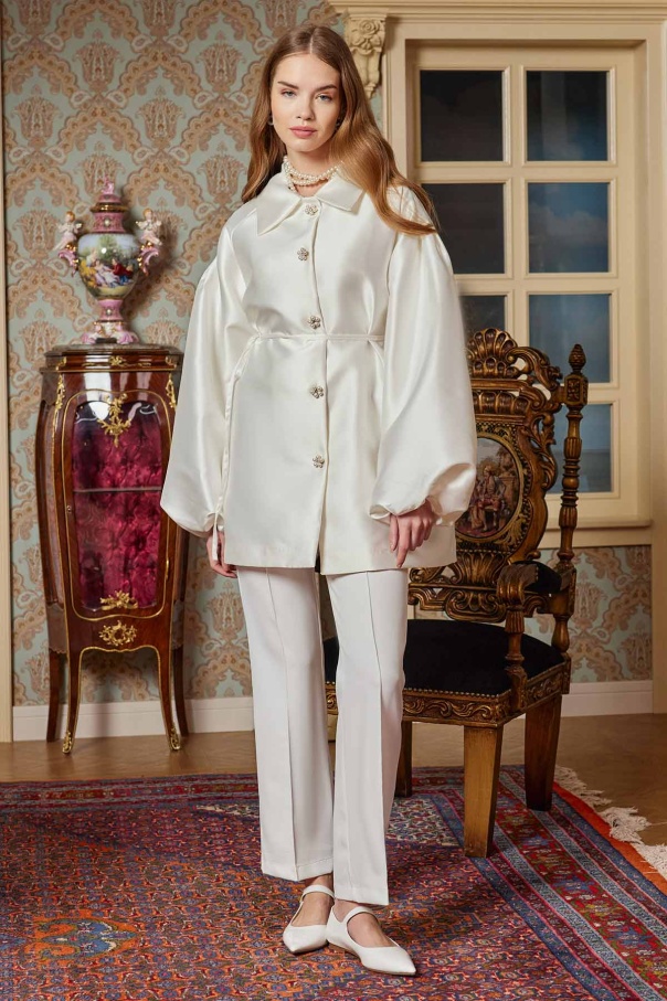 Balon Kol Brokar Kırık Beyaz Tunik