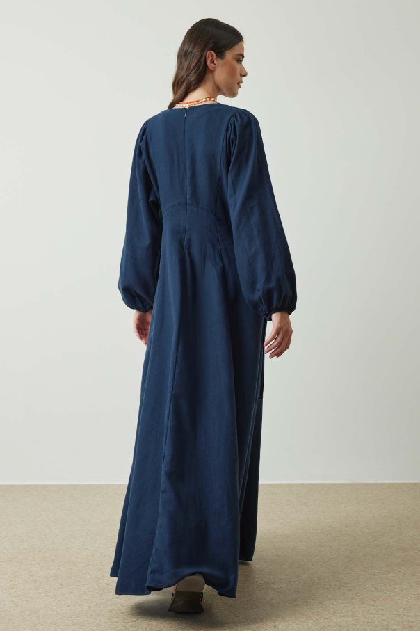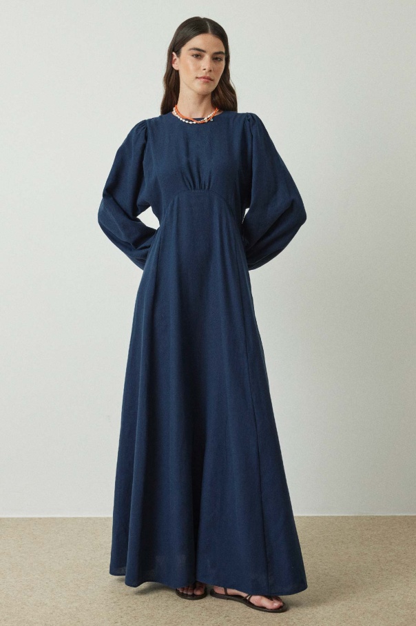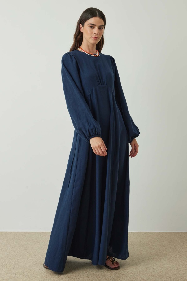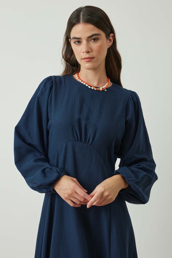 Balon Kol Keten Lacivert Elbise