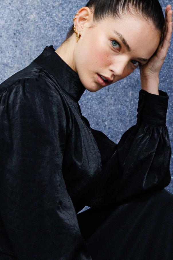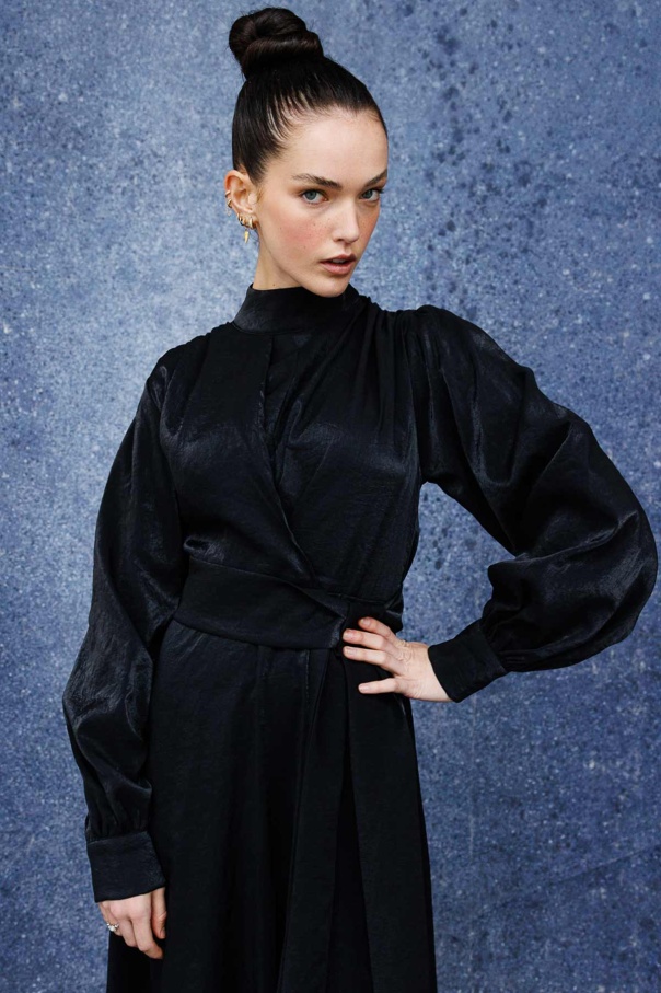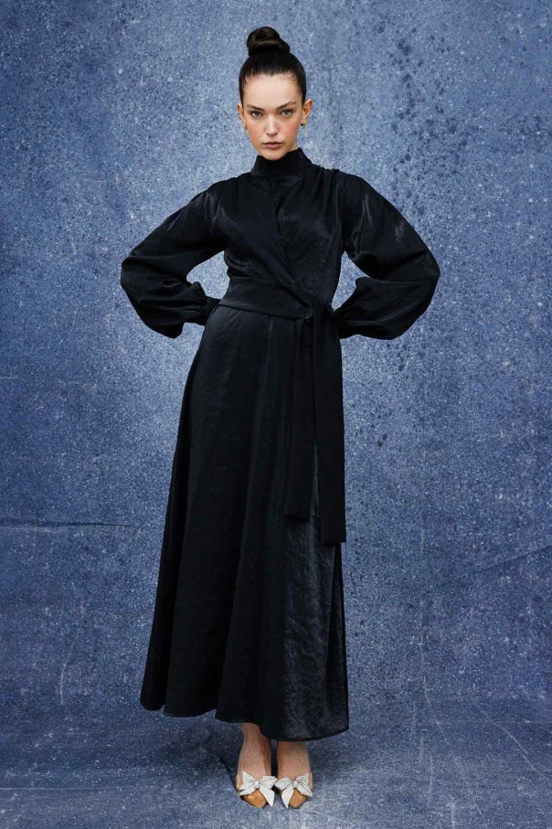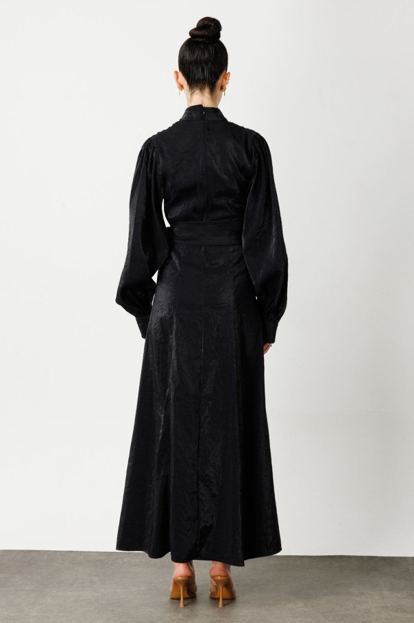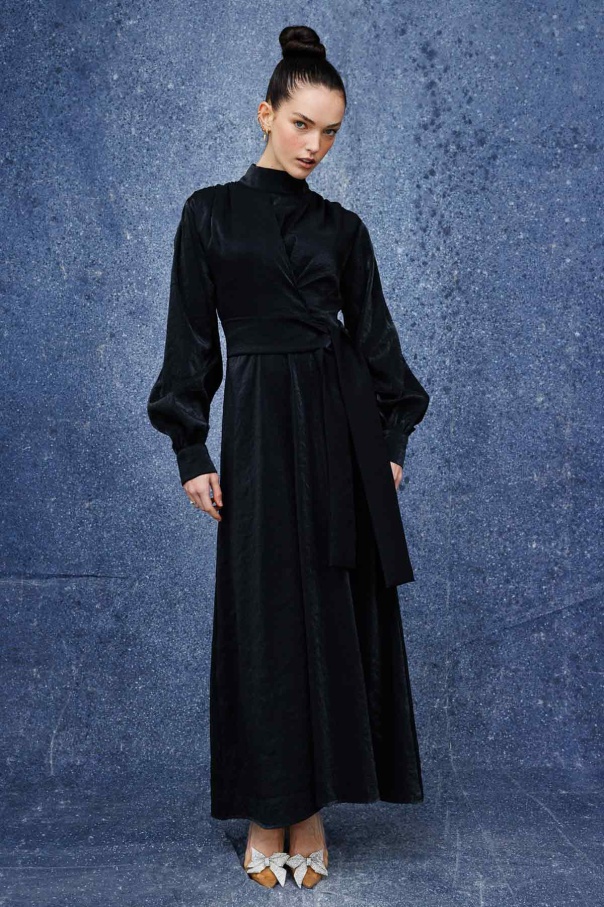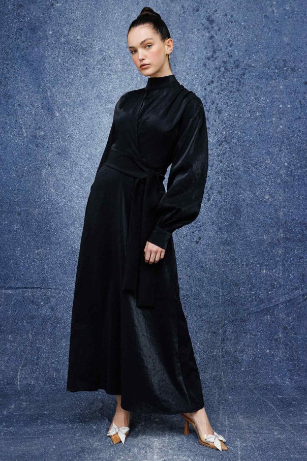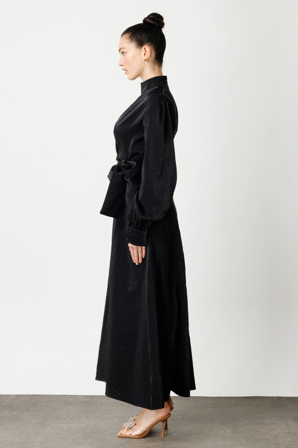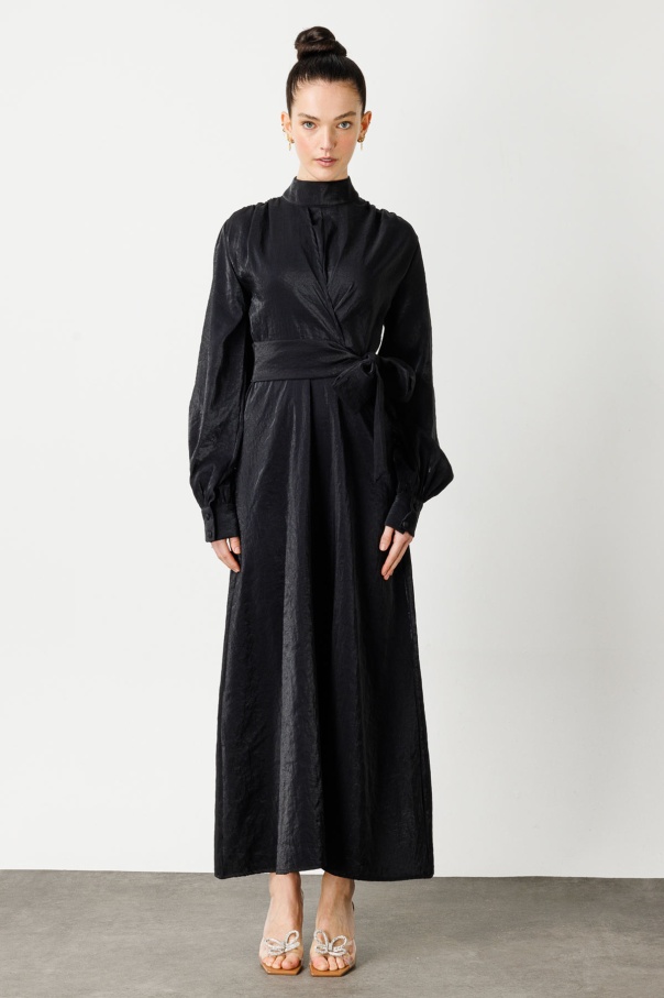 Verev Kapama Parlak Doku Elbise - Siyah