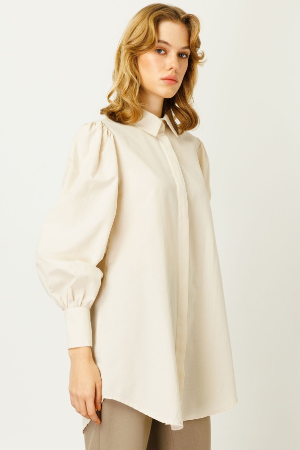 Balon Kollu Basıc Bej Gömlek