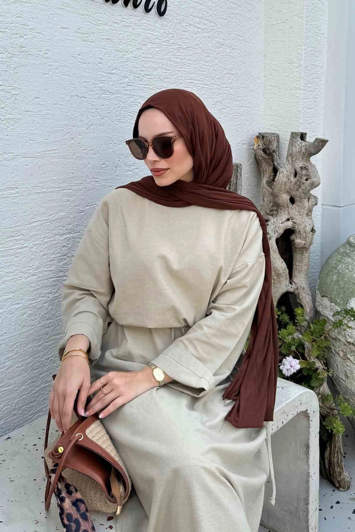 Basic Organik Vizon Elbise