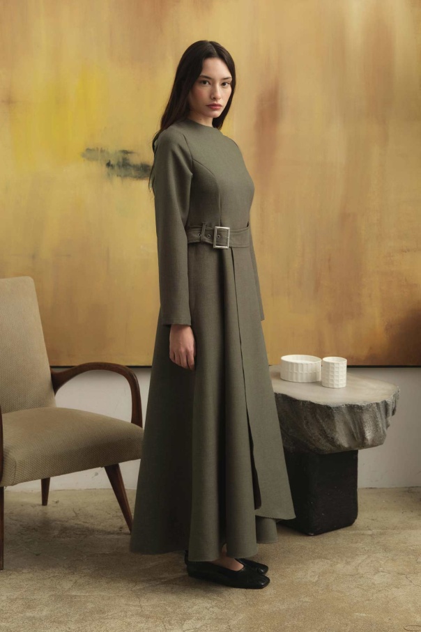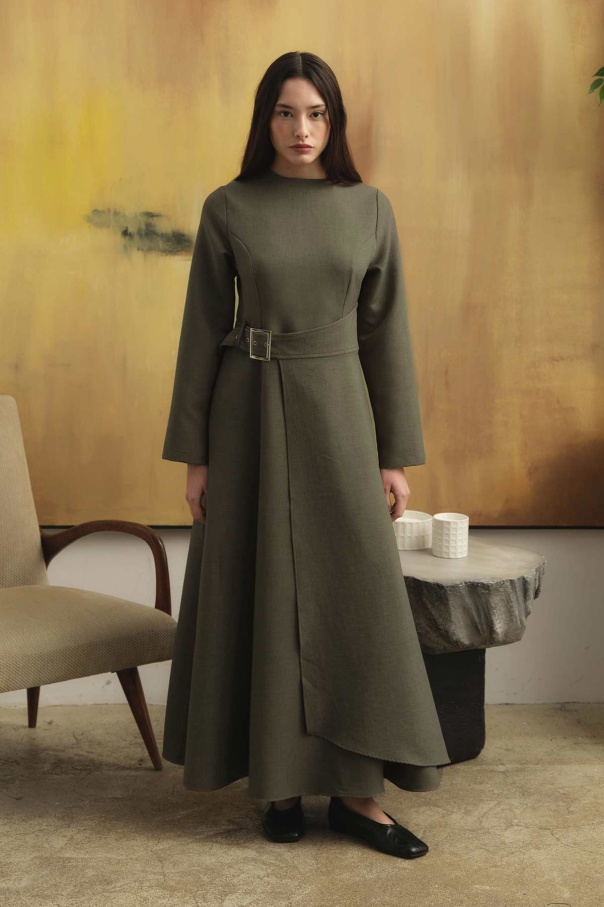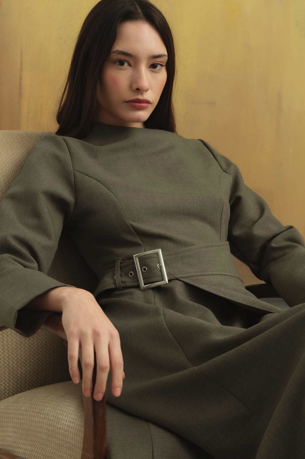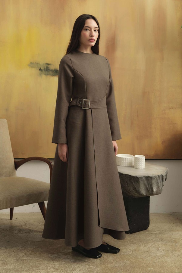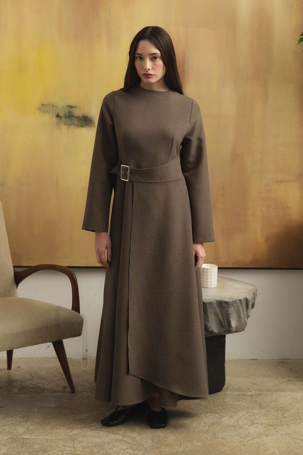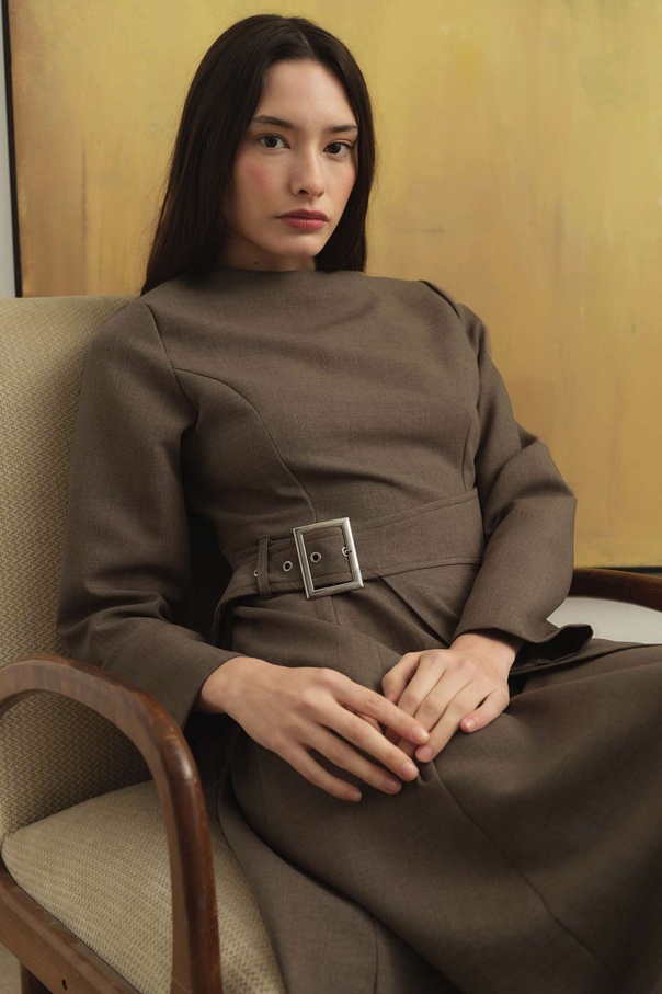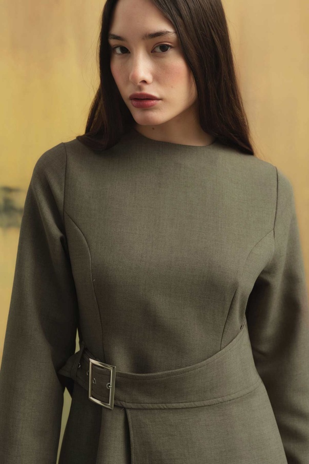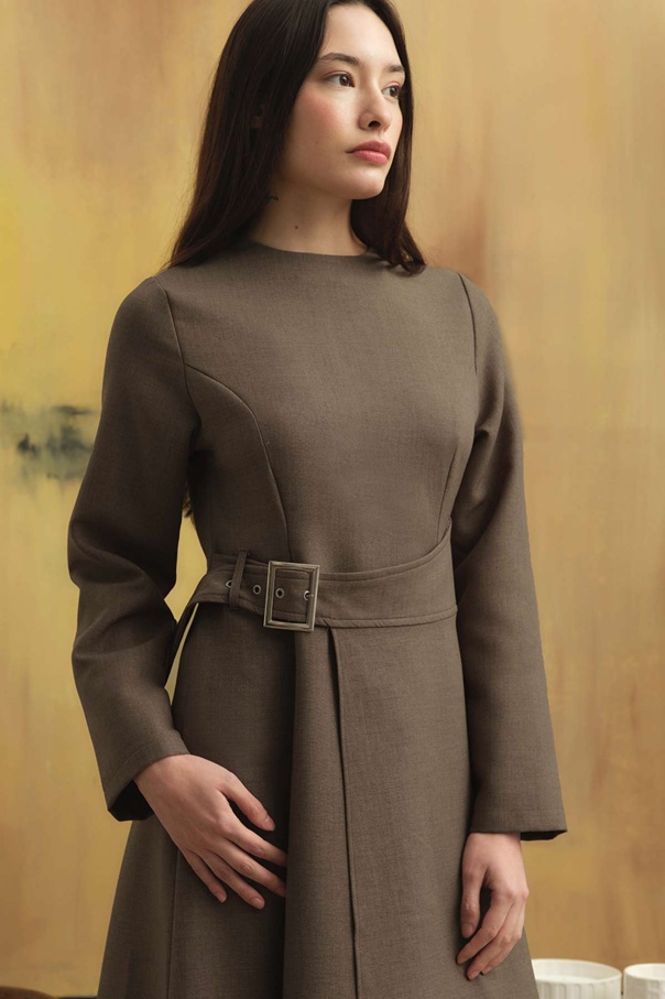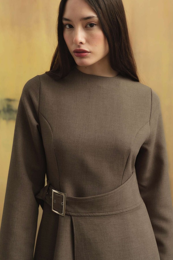 Beli Toka Detaylı Vizon Elbise