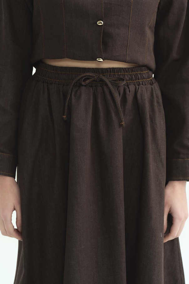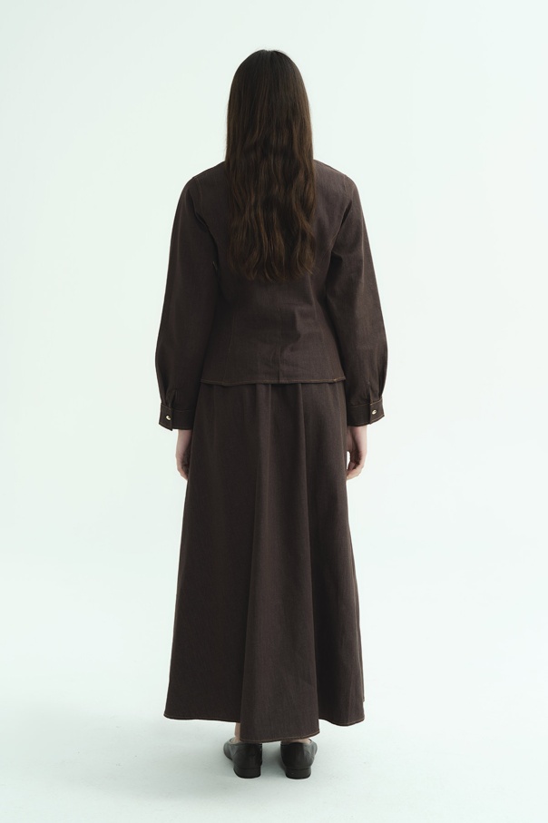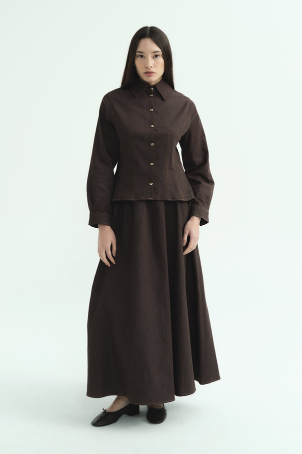 Beli Vurgulayan Denim Kahverengi Etek Takım