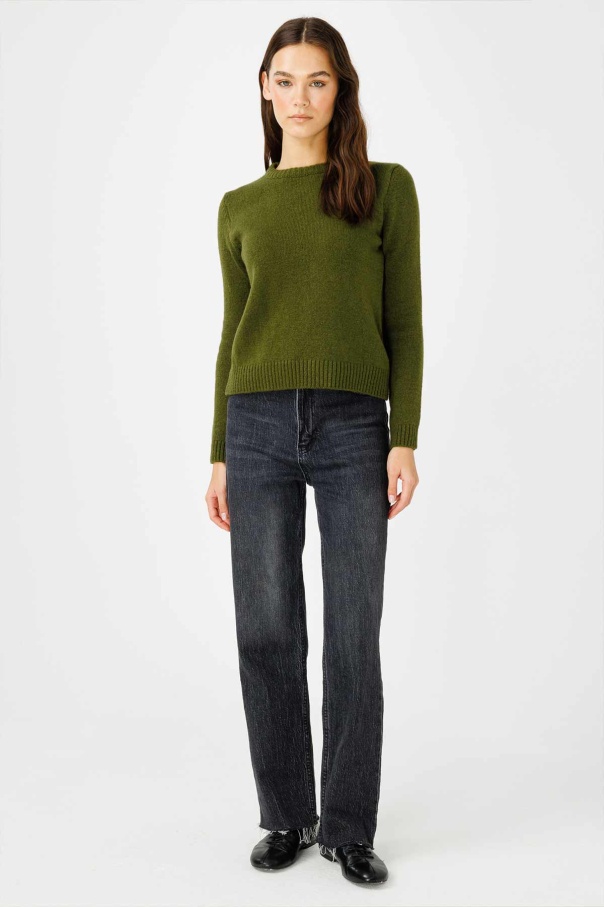 Bisiklet Yaka Fit Triko Çimen Yeşili Kazak