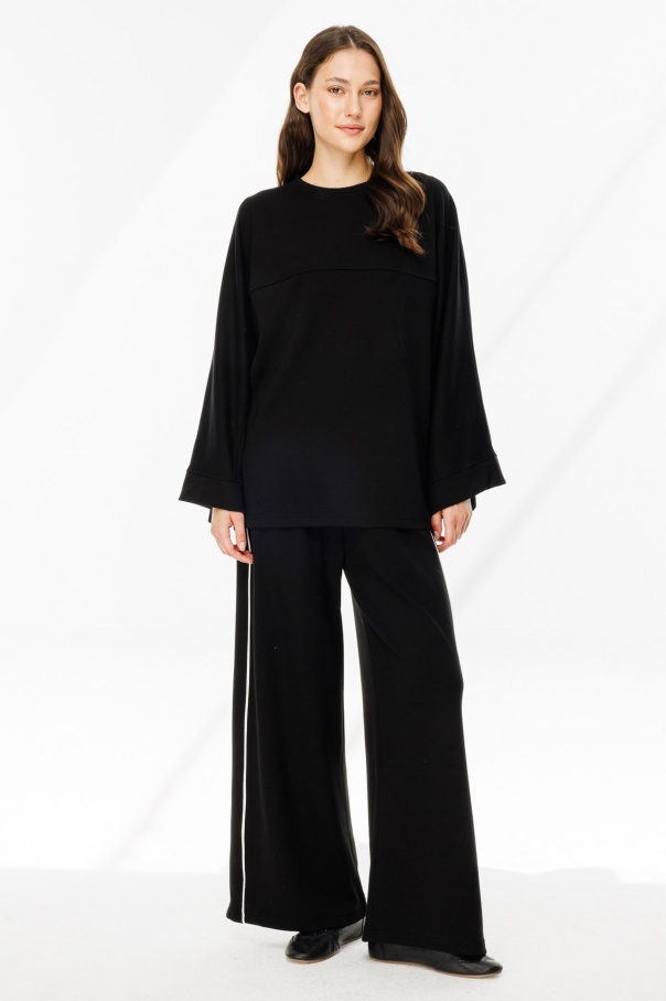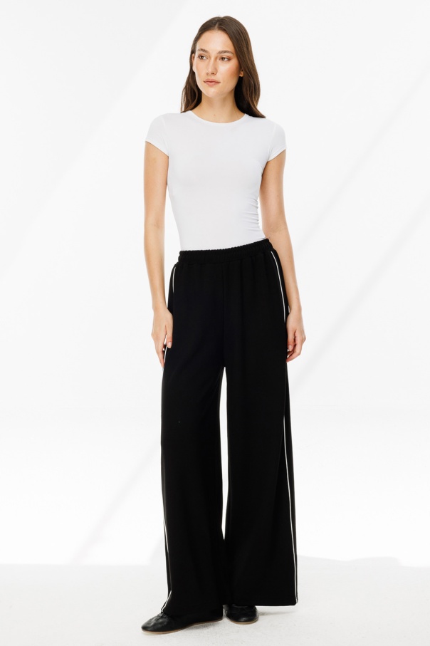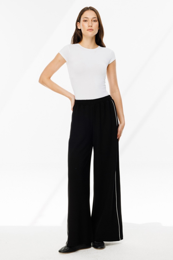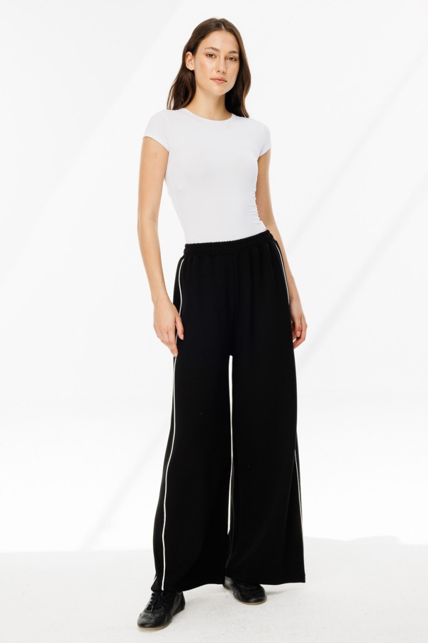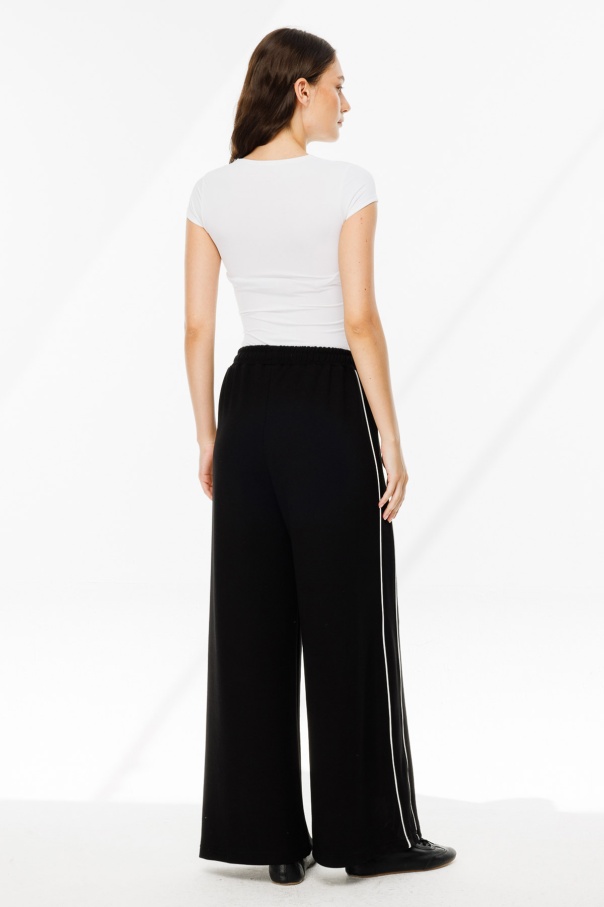 Biye Detaylı Palazzo Siyah Eşofman Pantolon