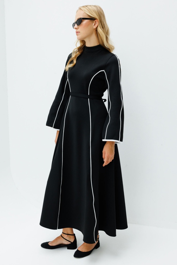 Biyeli Scuba Siyah Elbise