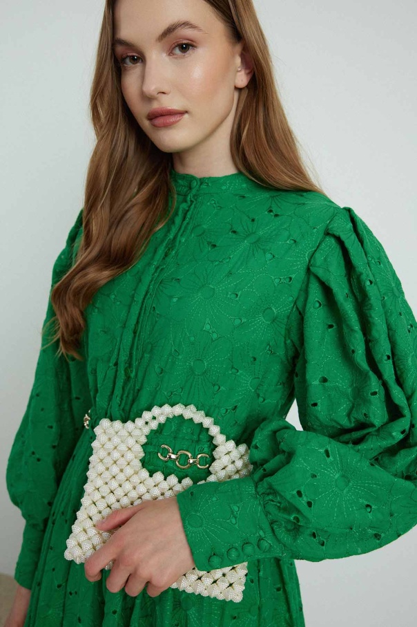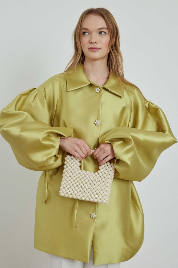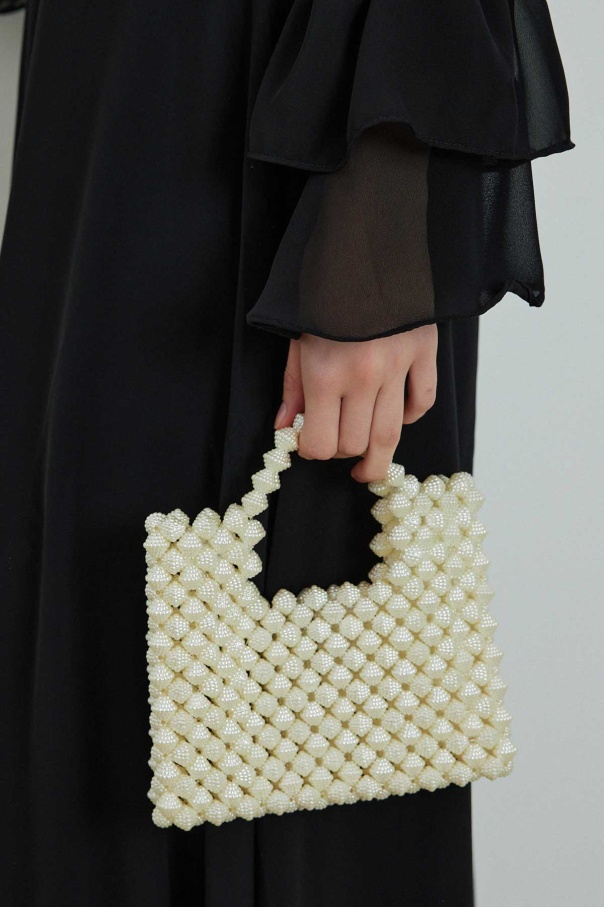 Boncuk Taş Dizimli Naturel El Çanta