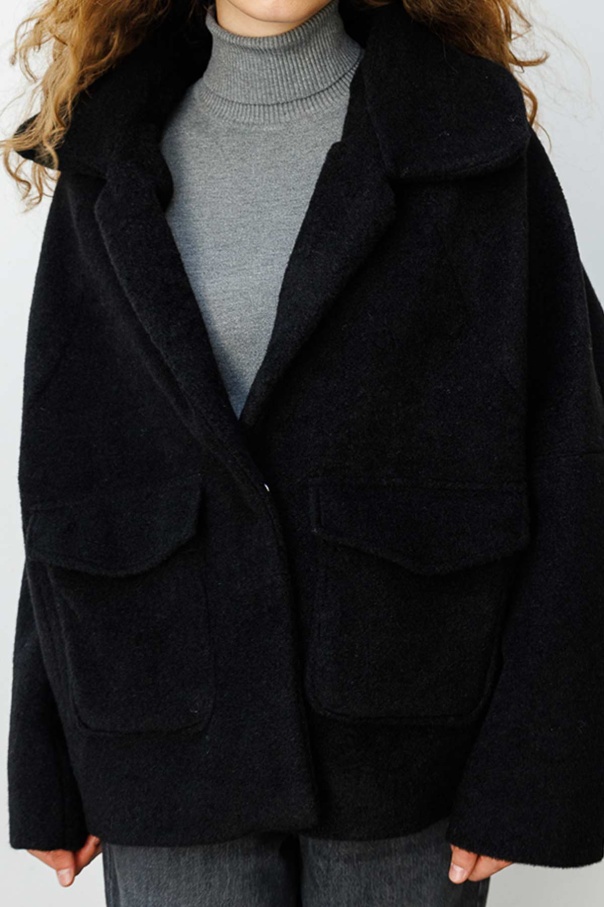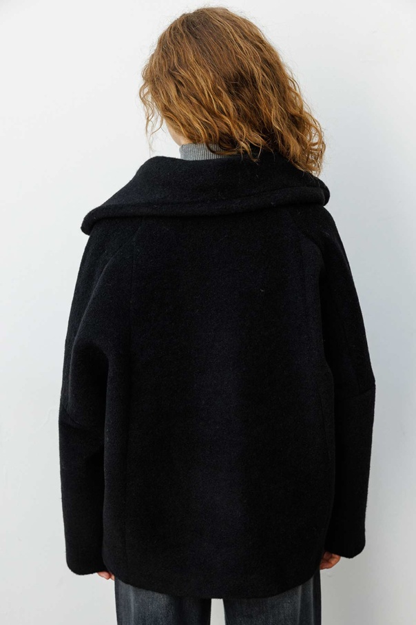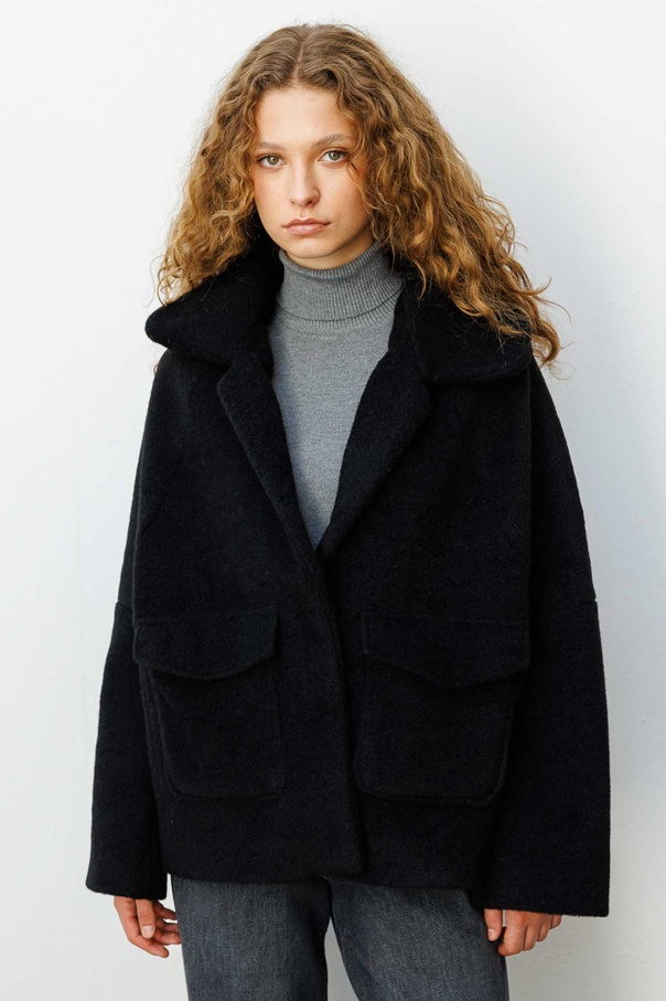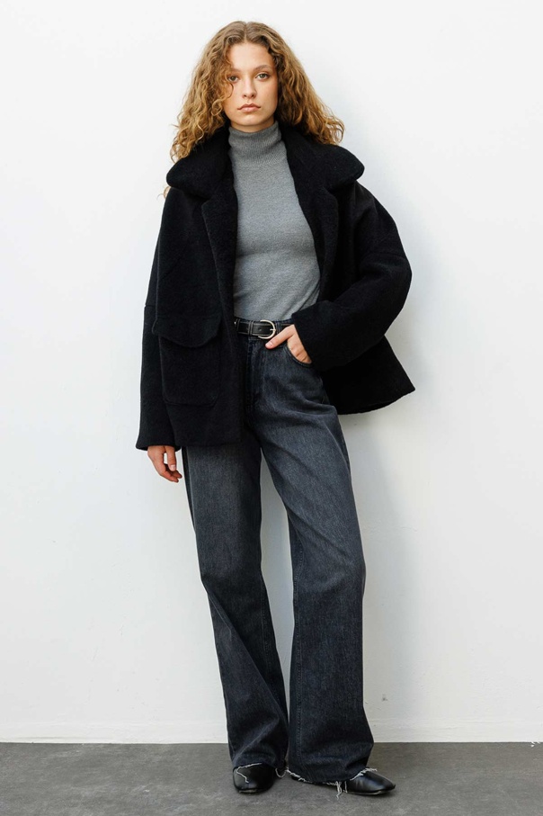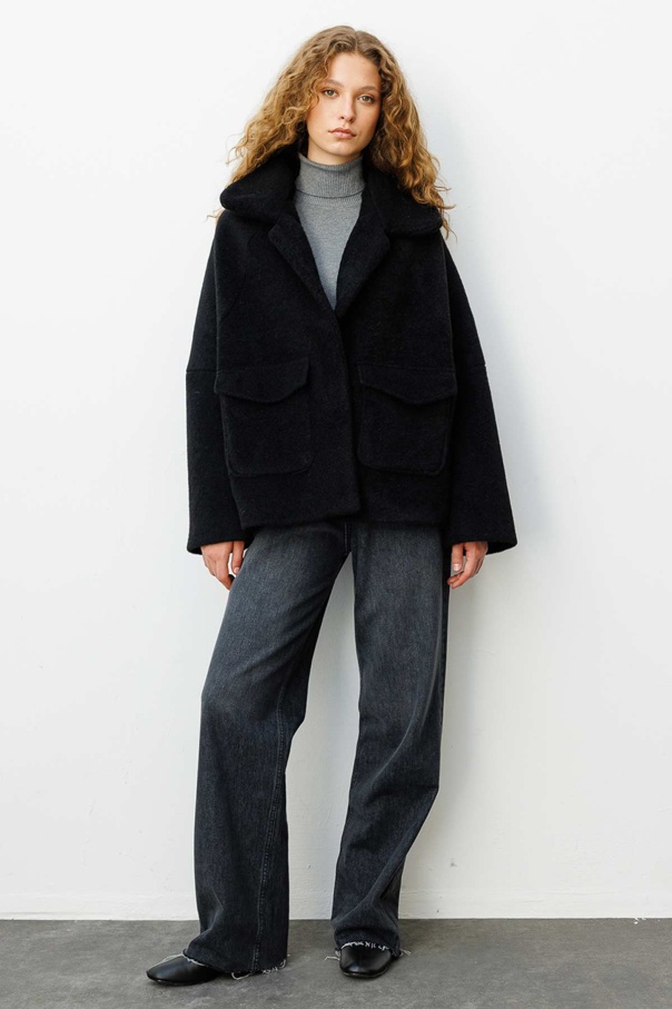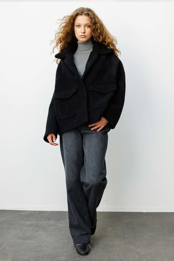 Cep Kapaklı Oversize Siyah Kaban
