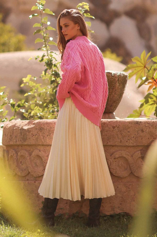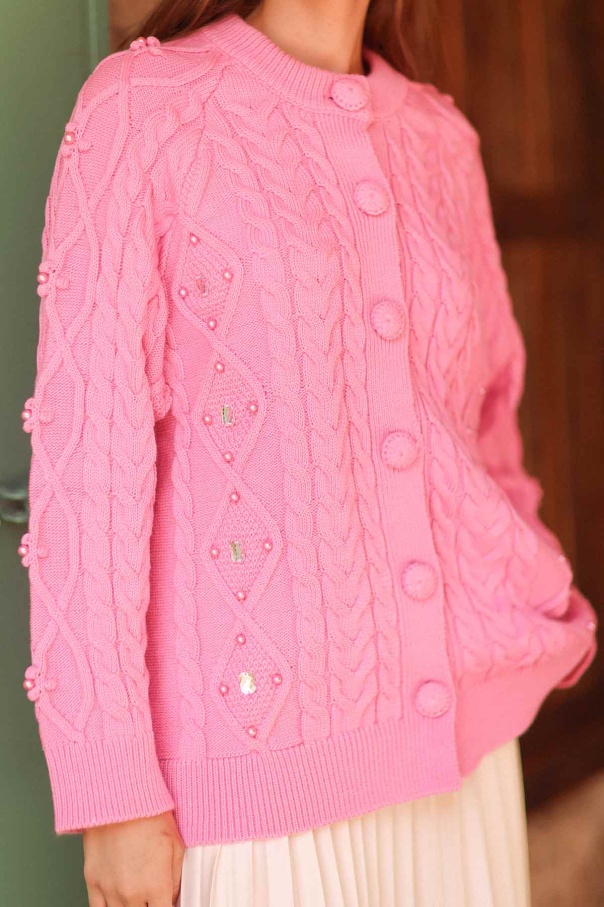 Çiçek Aksesuarlı Örme Hırka - Pembe