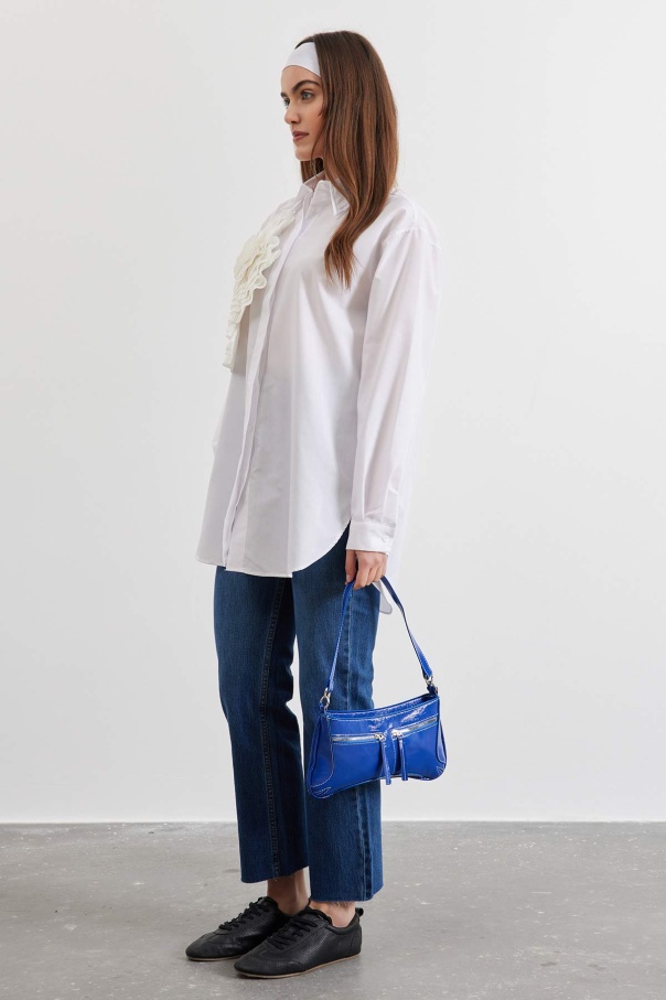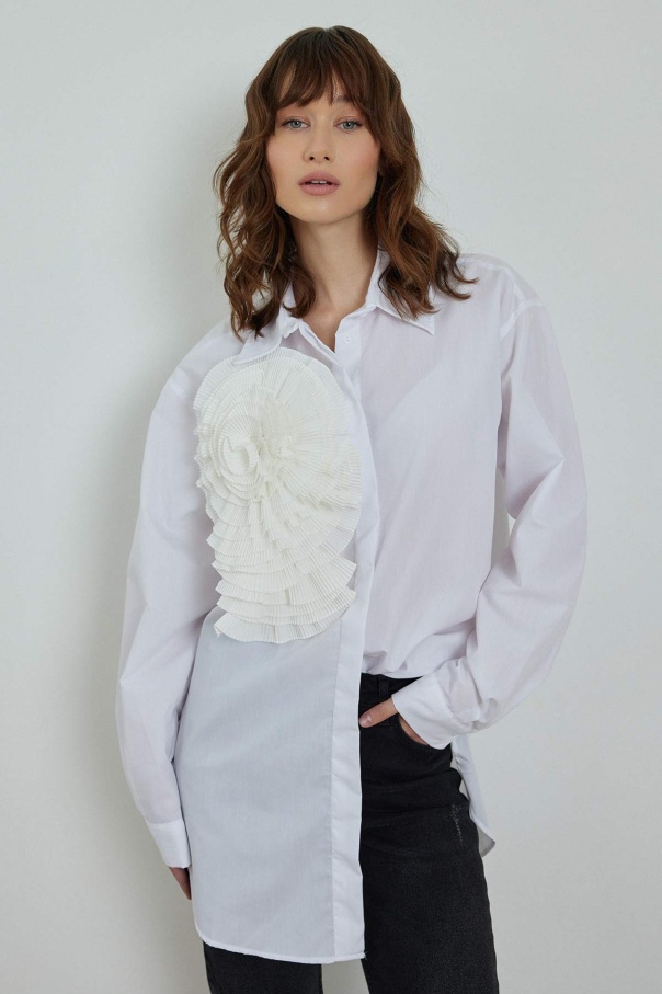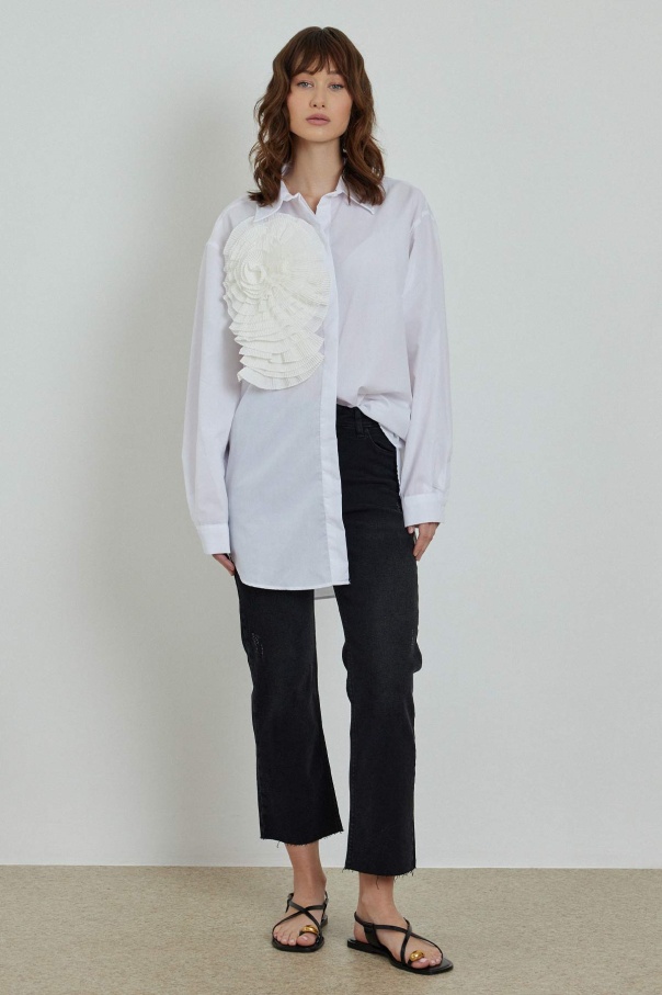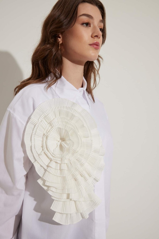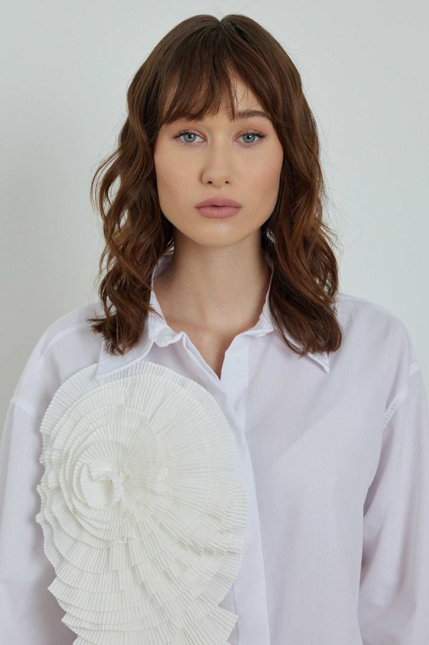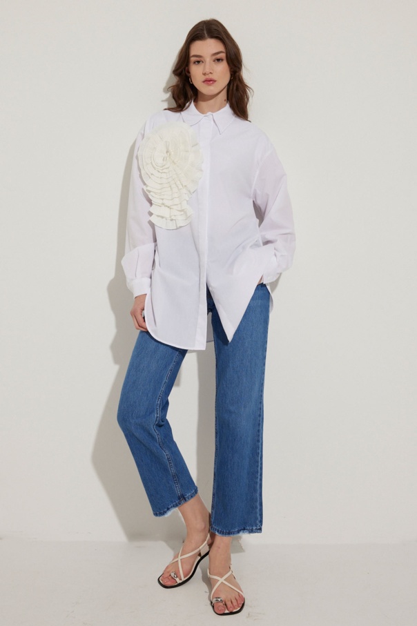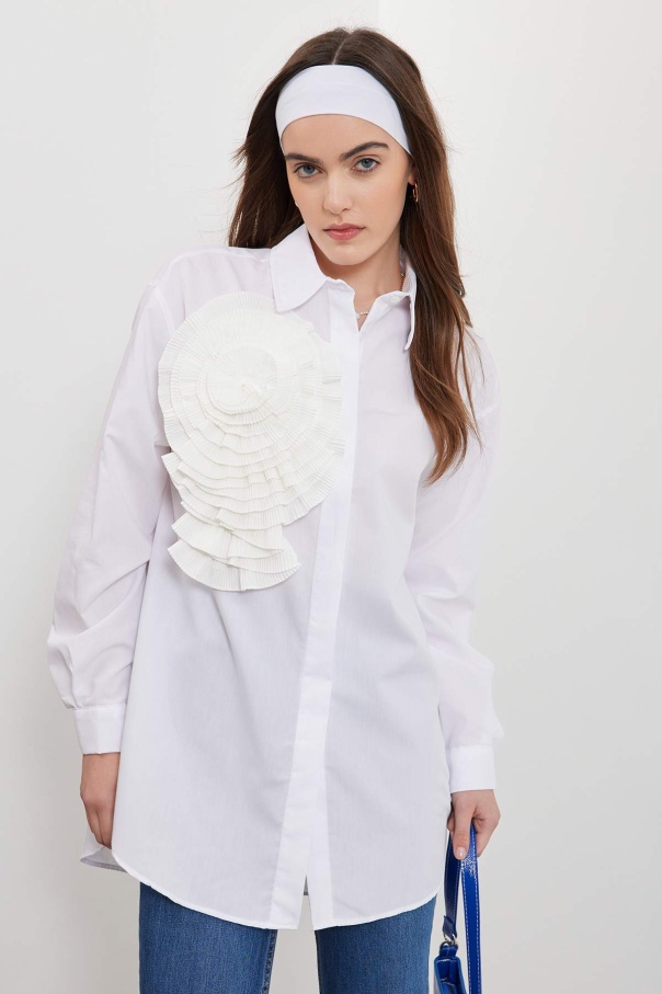 Çiçek Aksesuarlı Poplin Beyaz Gömlek