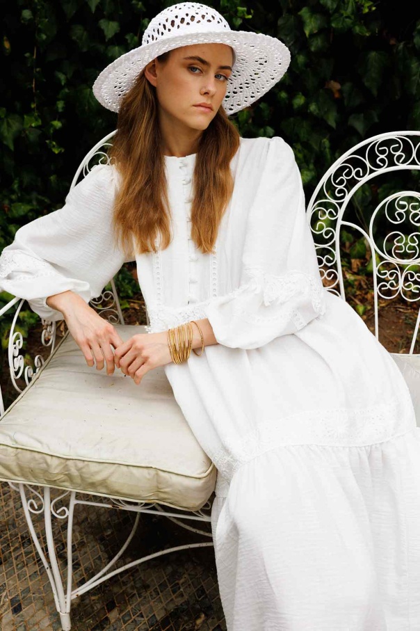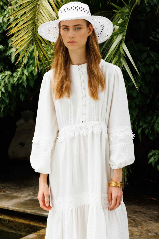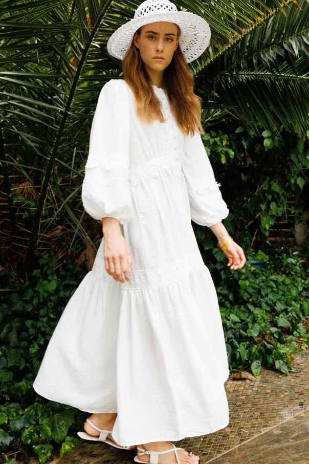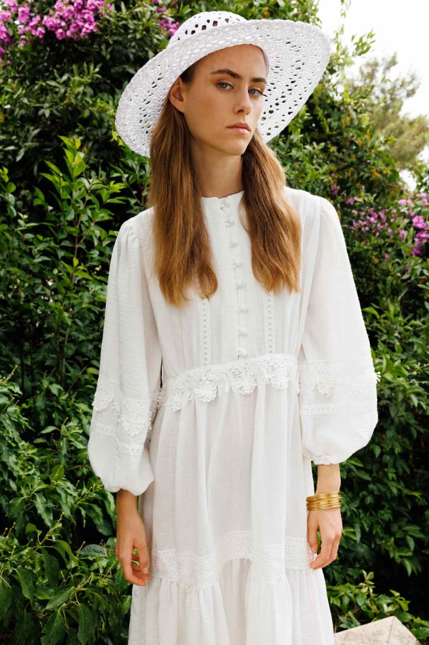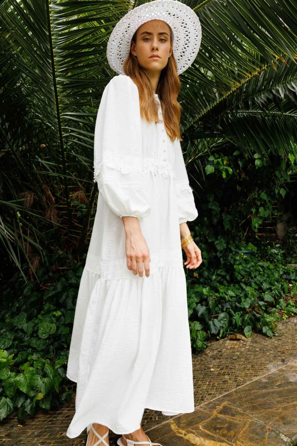 Çiçek Şerit Detaylı Ekru Elbise