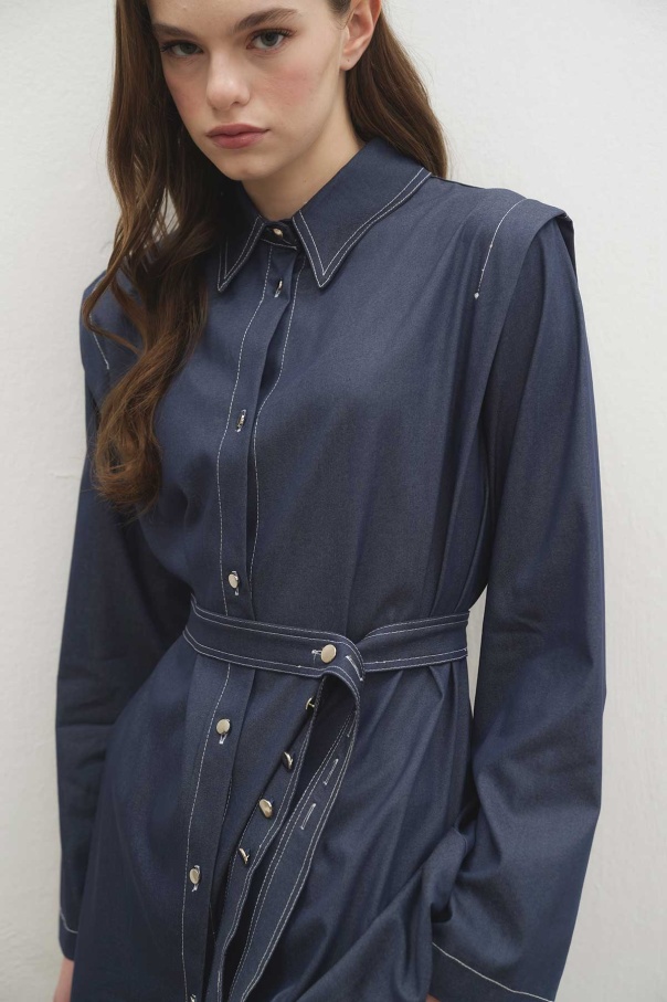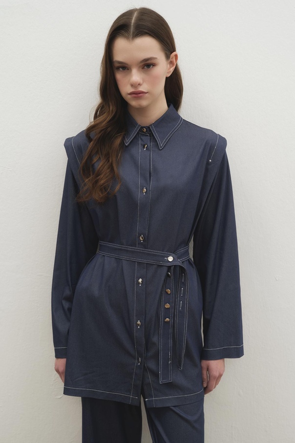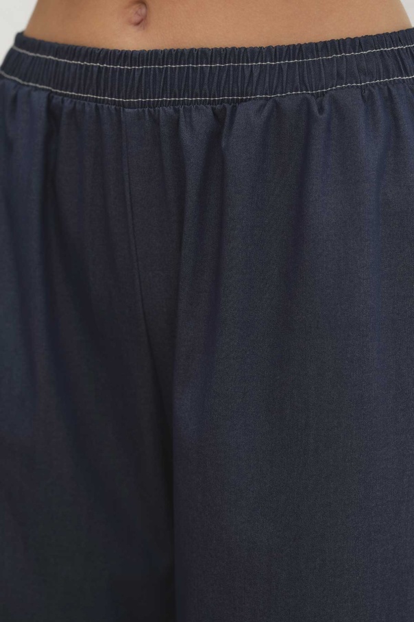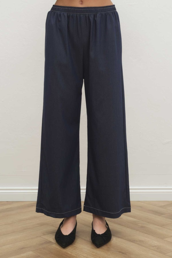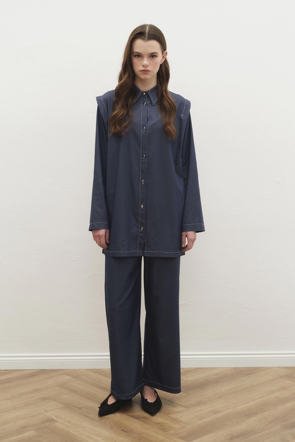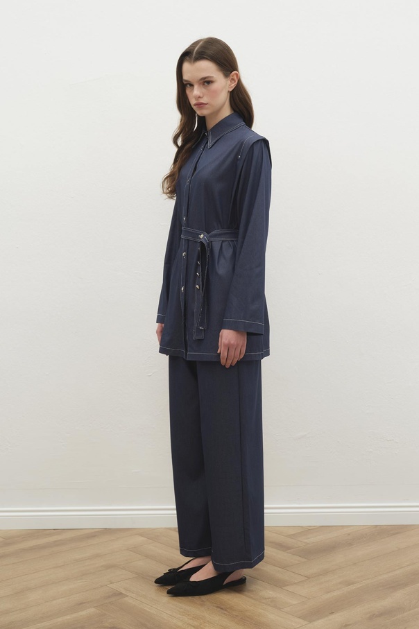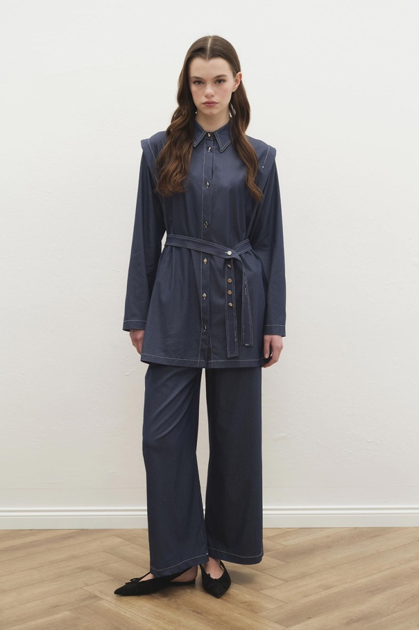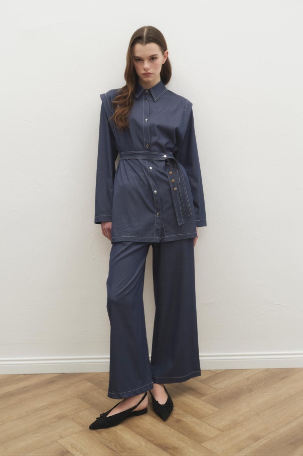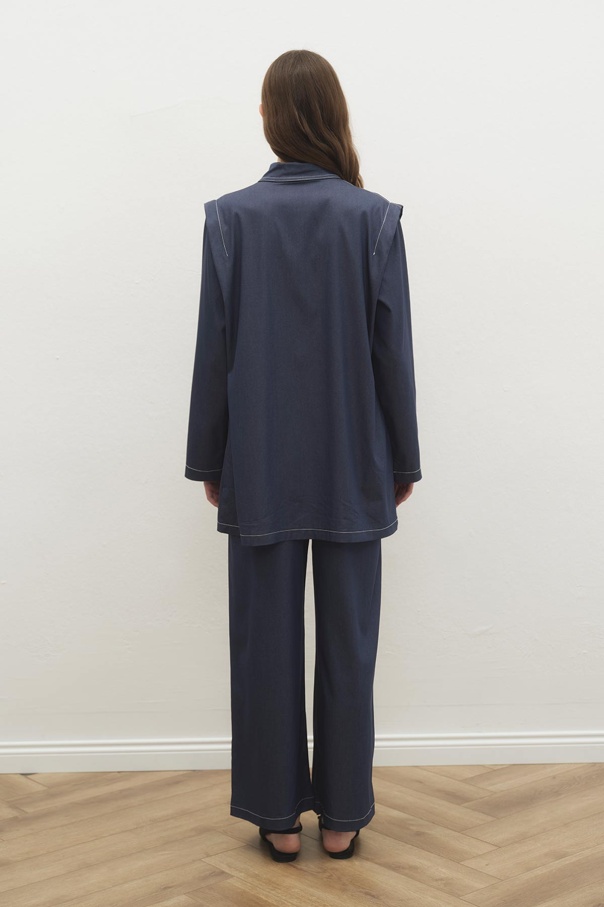Çift Dikiş Detaylı Tensel Denim Pantolon Lacivert Takım