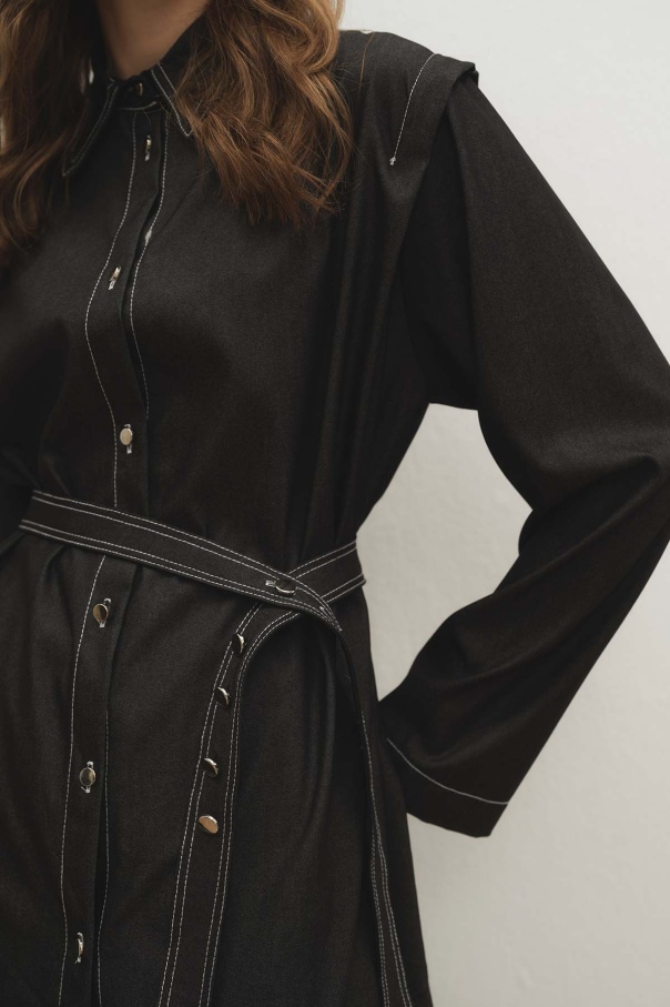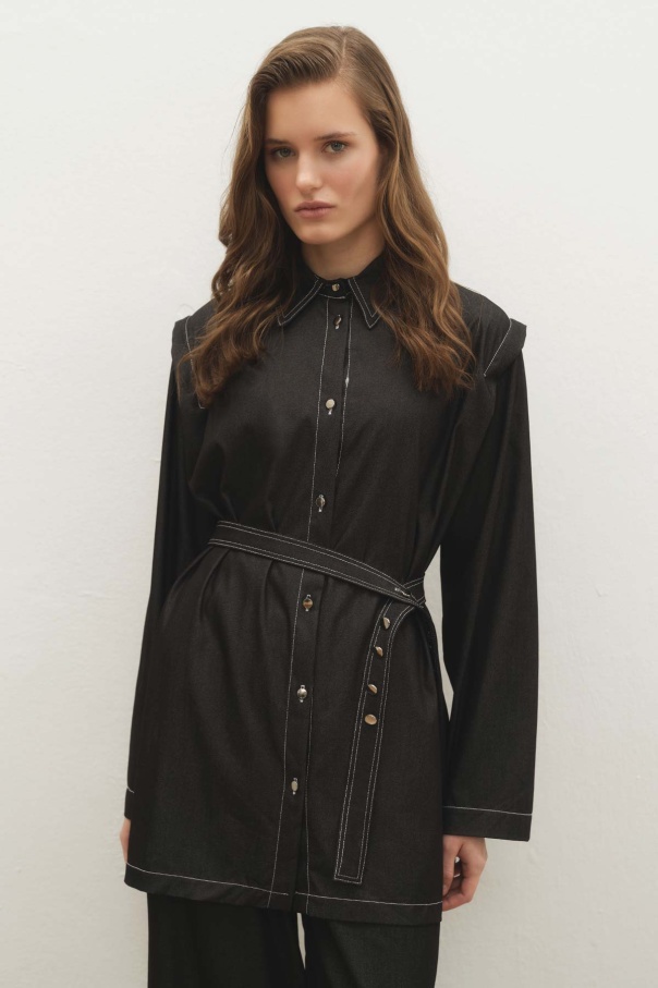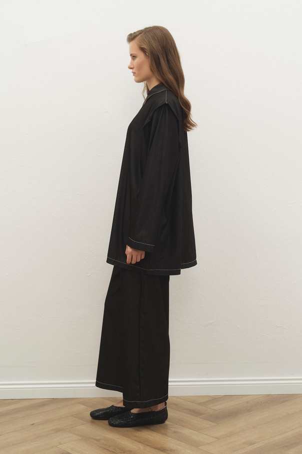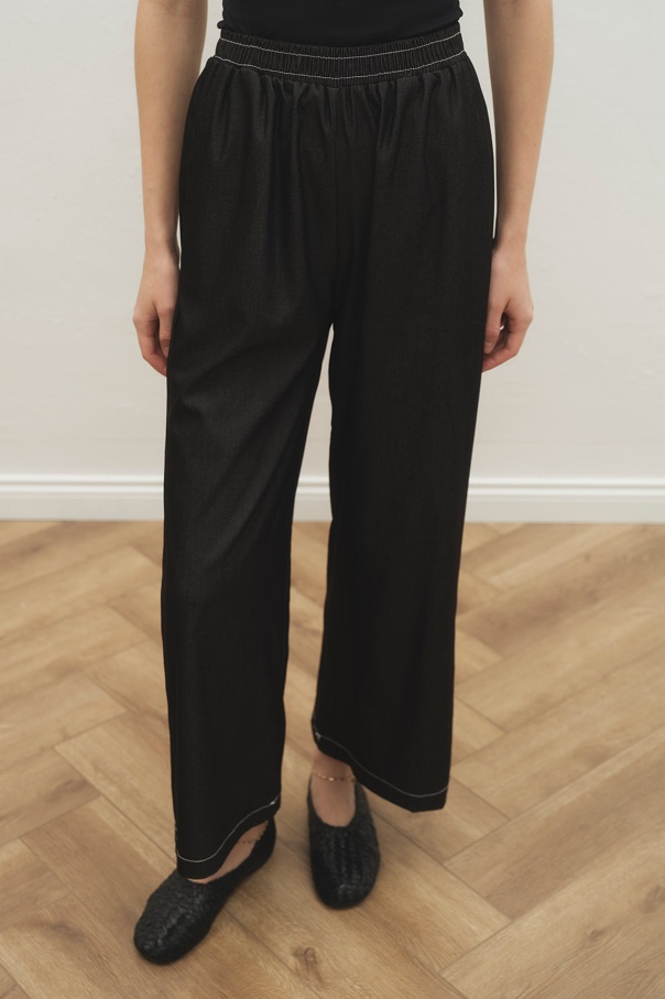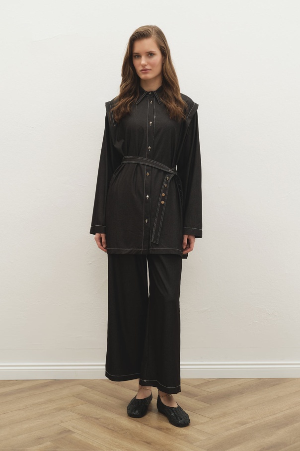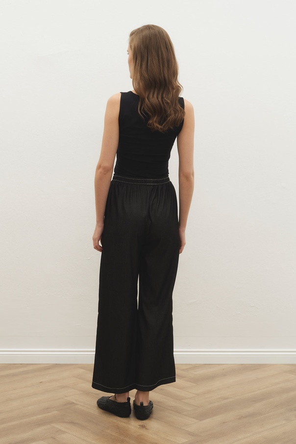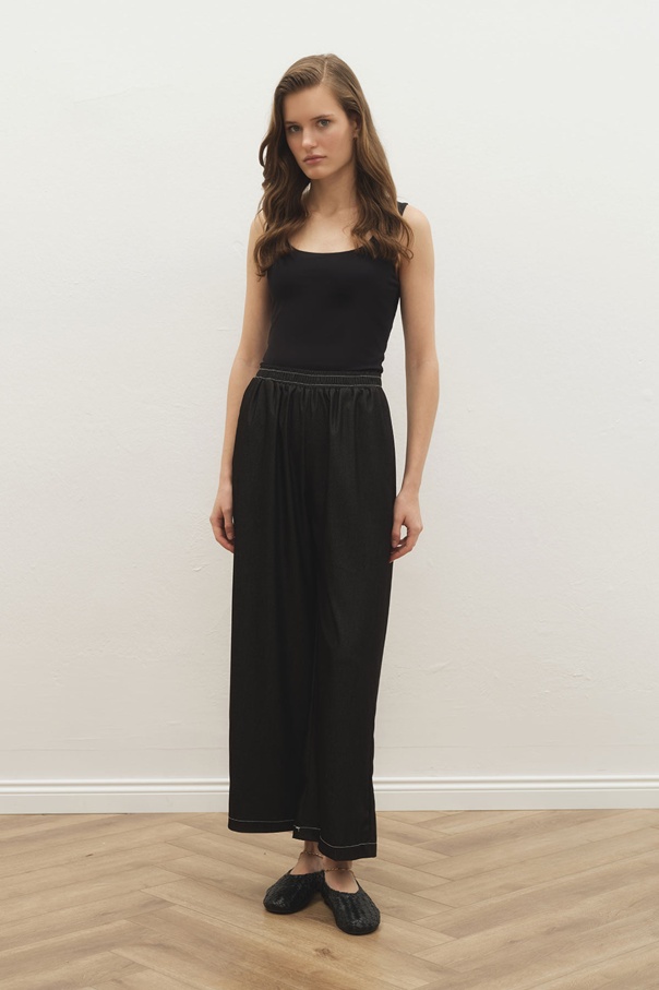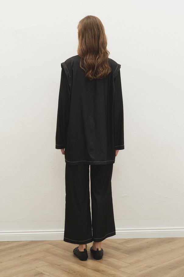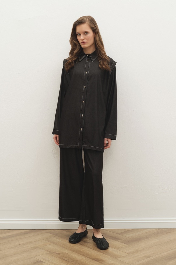 Çift Dikiş Detaylı Tensel Denim Pantolon Siyah Takım