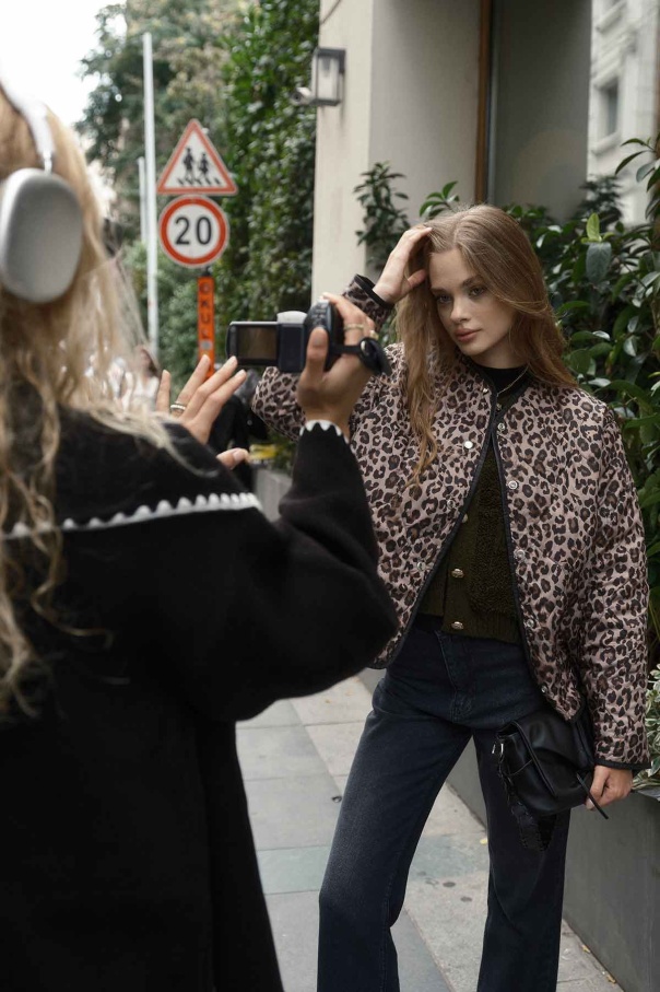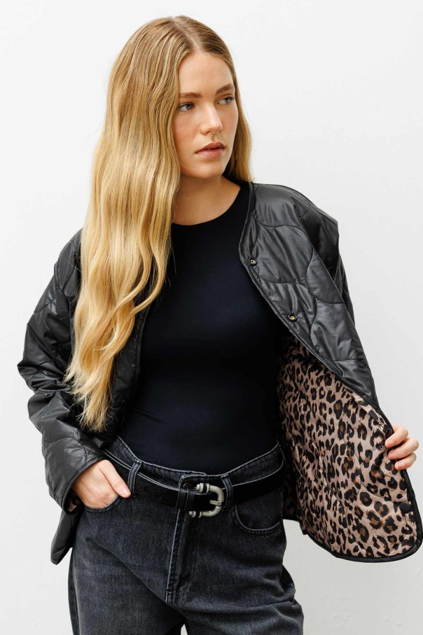 Çift Yönlü Kapitone Leopar Desen Ceket
