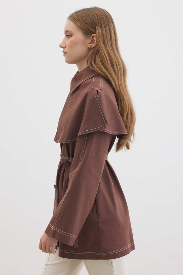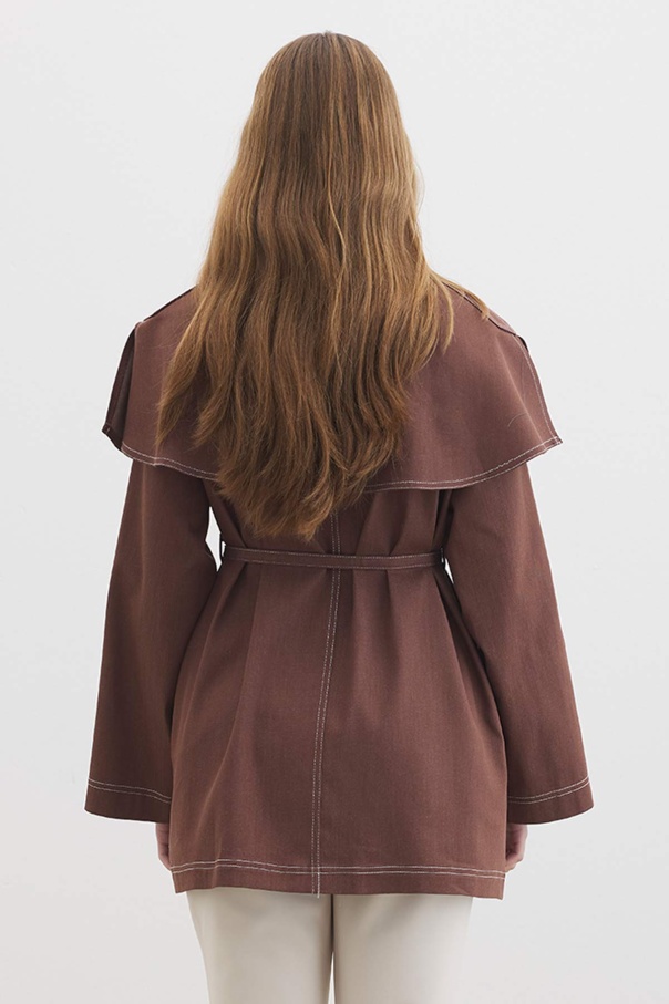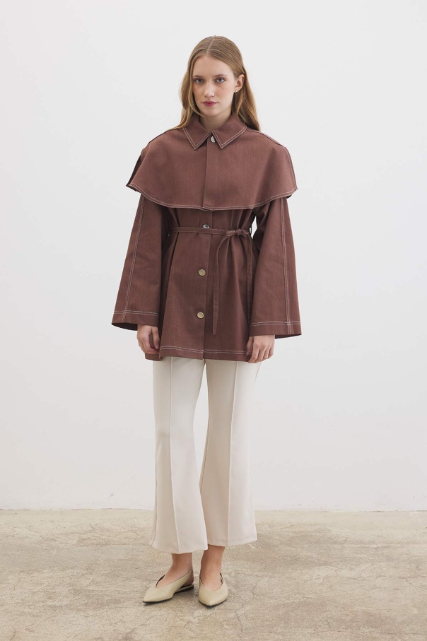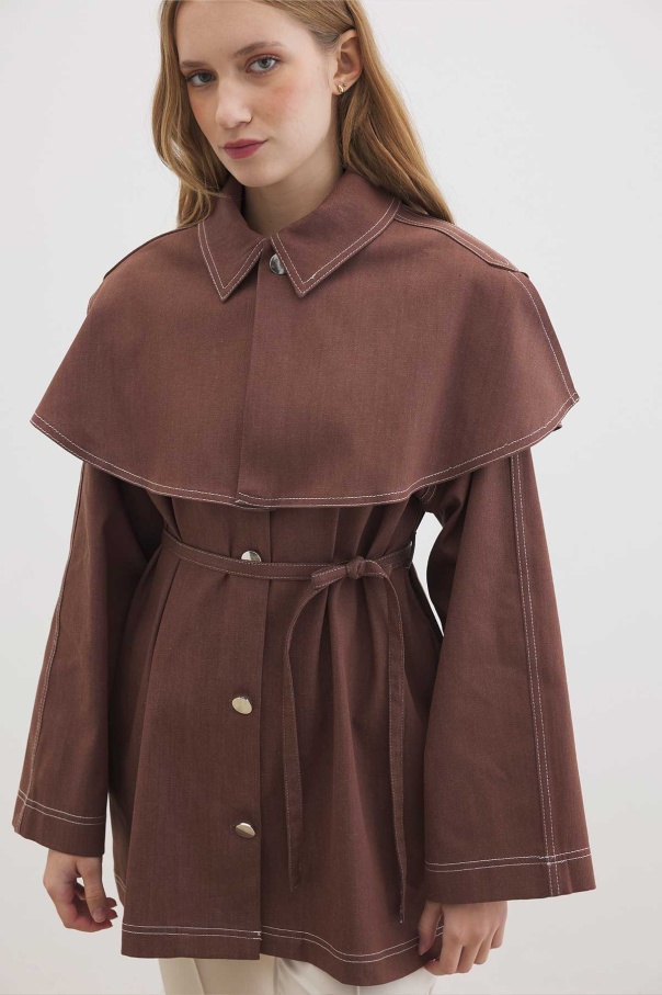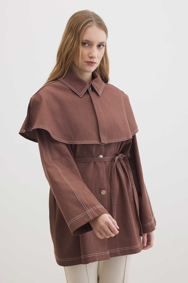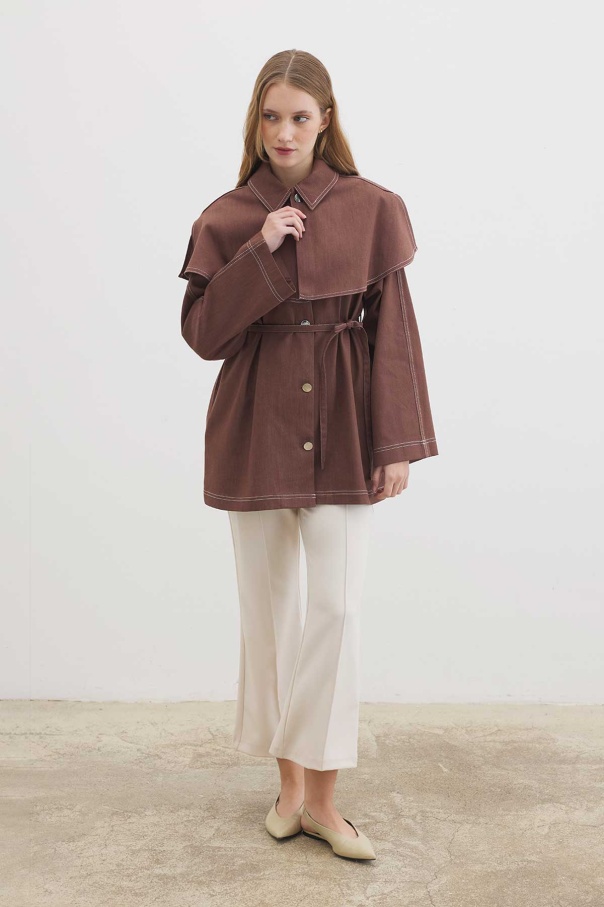 Çıkarılabilir Pelerin Yaka Açık Kahve Gömlek