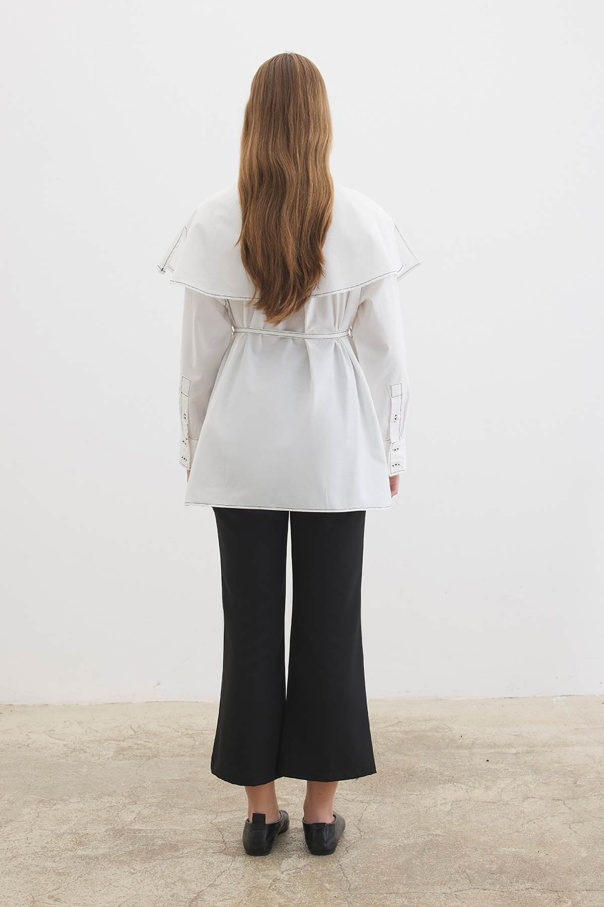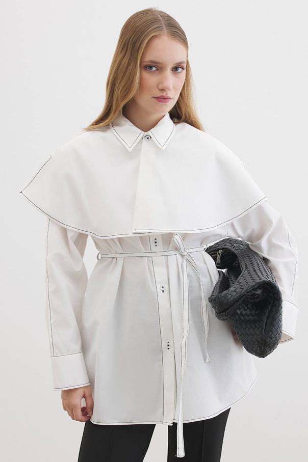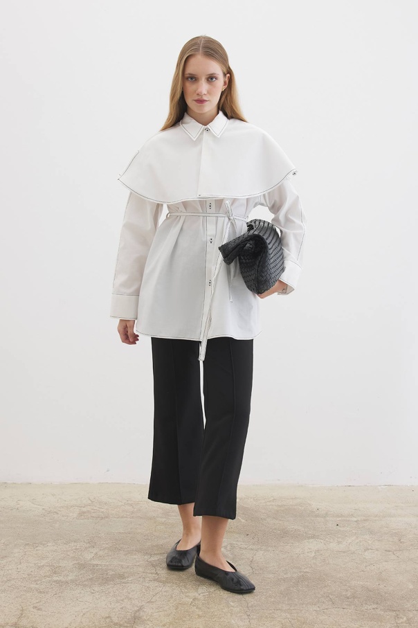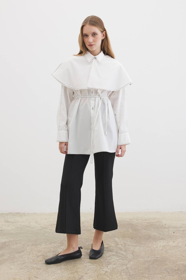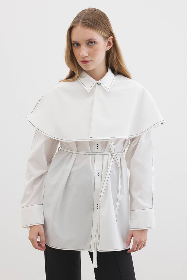 Çıkarılabilir Pelerin Yaka Beyaz Gömlek