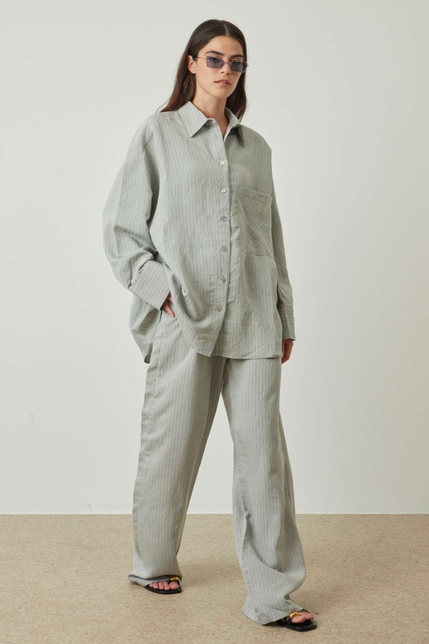 Çizgili Gri Pantolon Takım