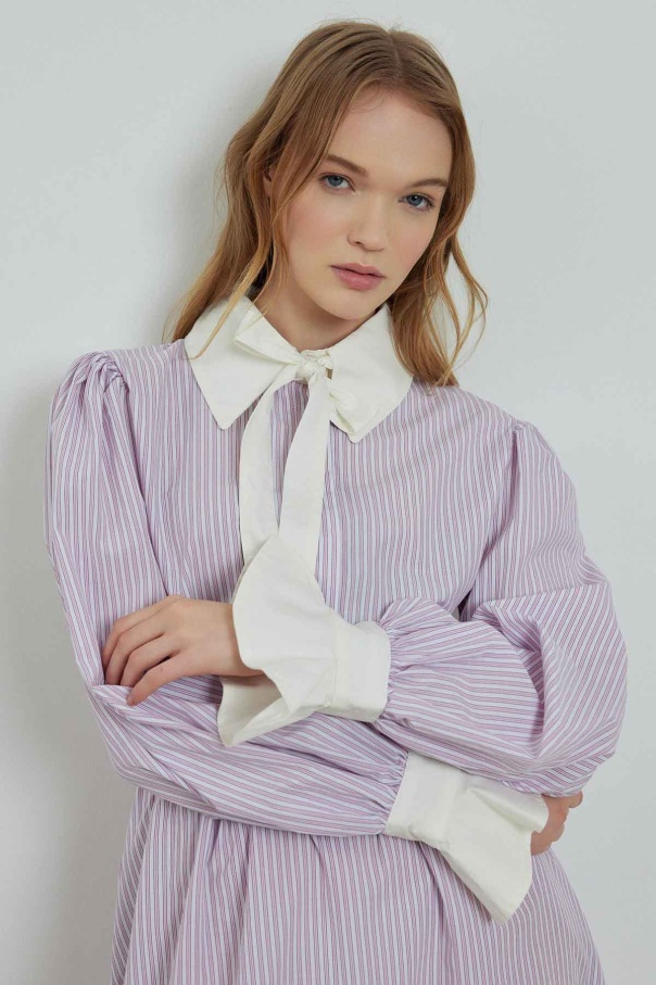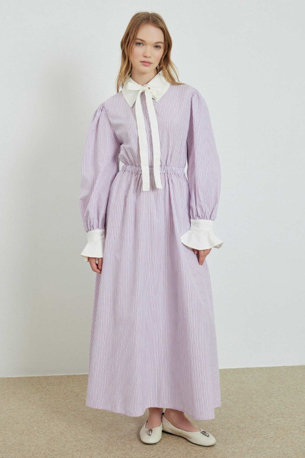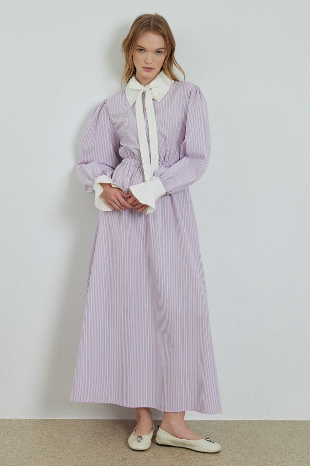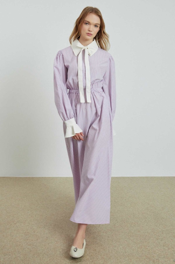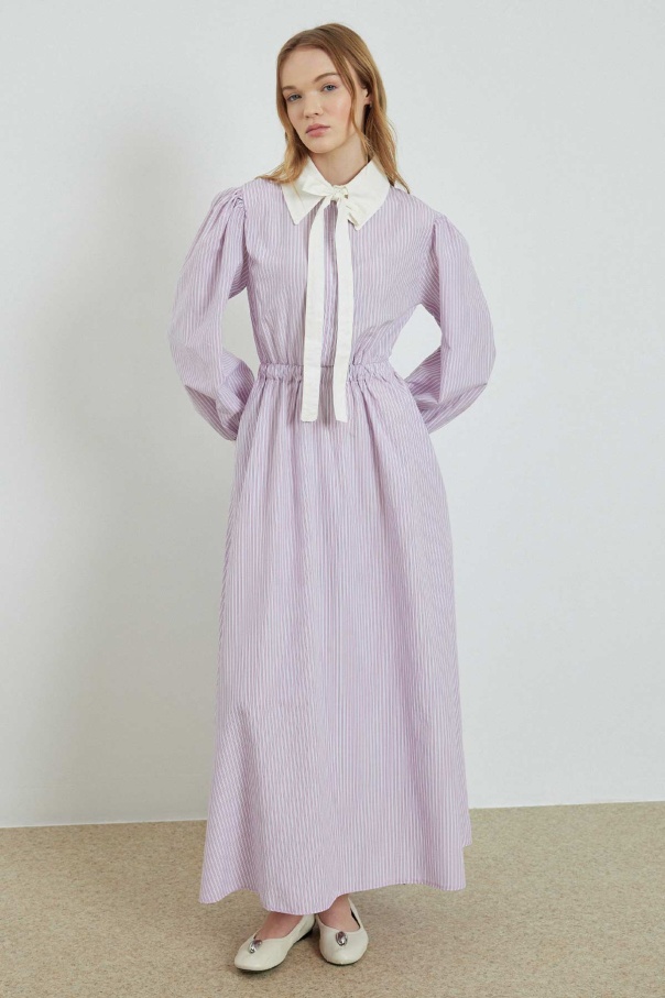Çizgili Poplin Pembe Elbise