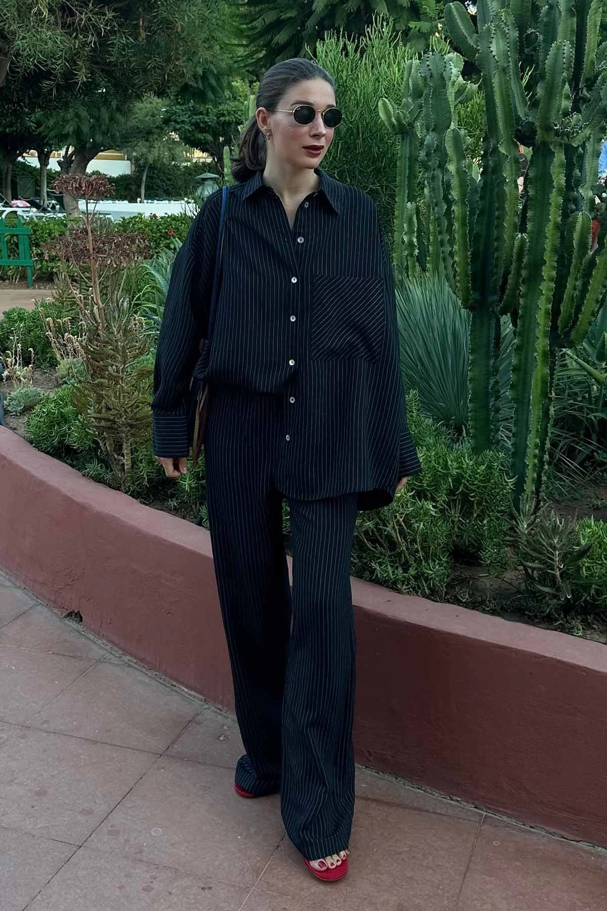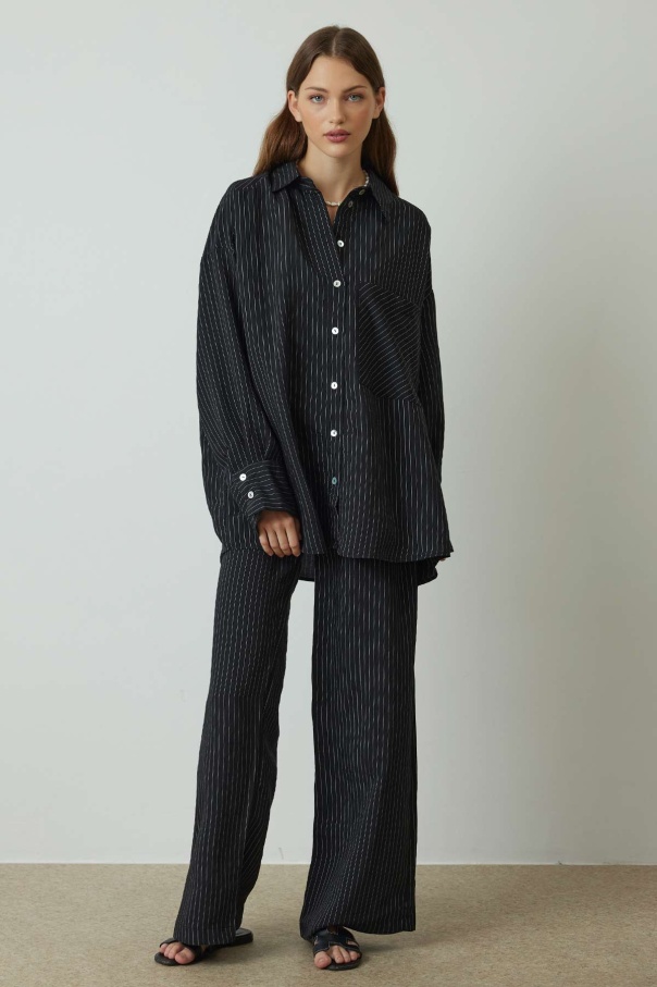 Çizgili Siyah Pantolon Takım