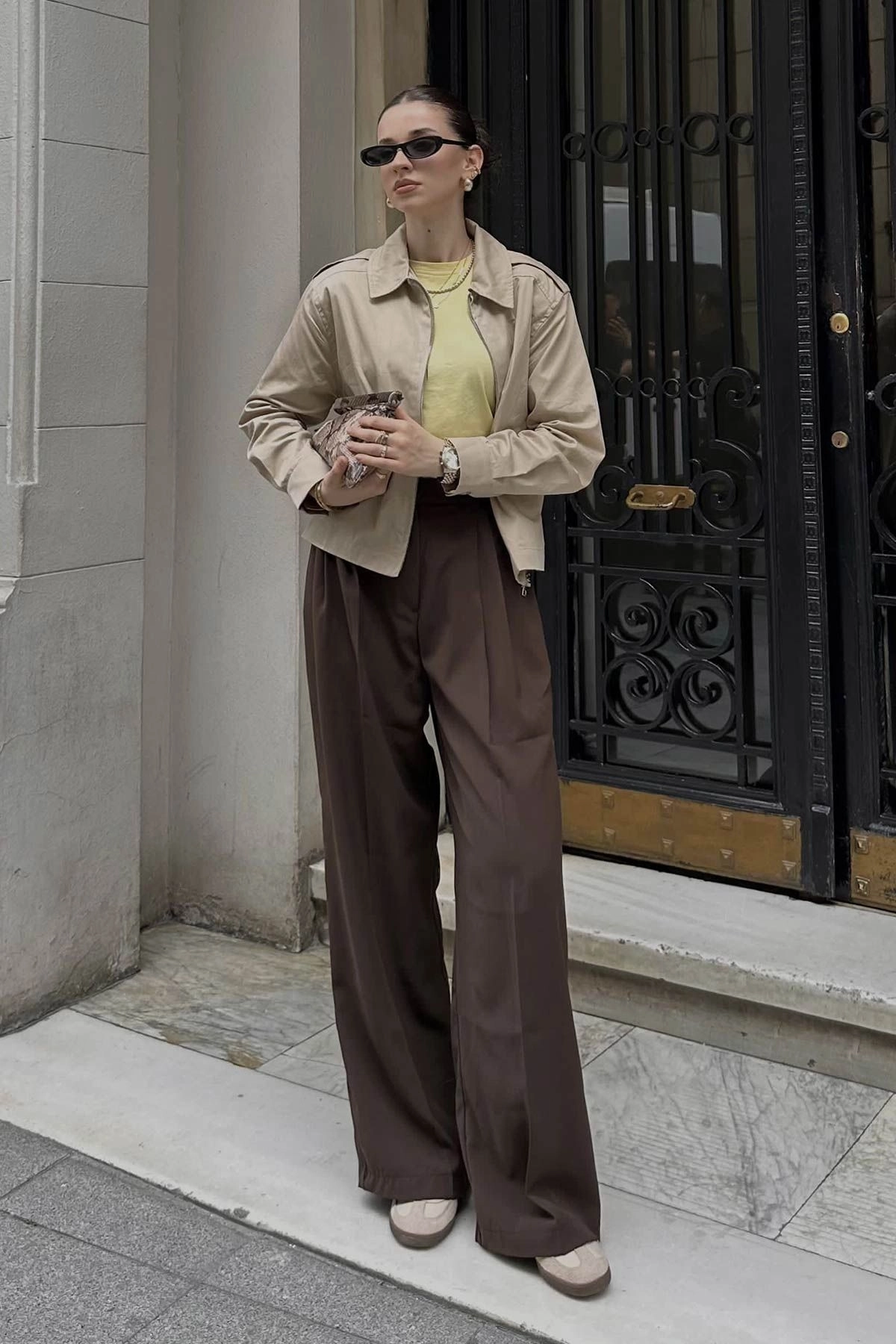 Class Lastik Detaylı Palazzo Kahve Pantolon