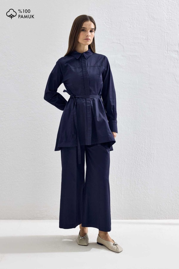 Cosmo Bel Detaylı Pamuklu Lacivert Pantolon Takım